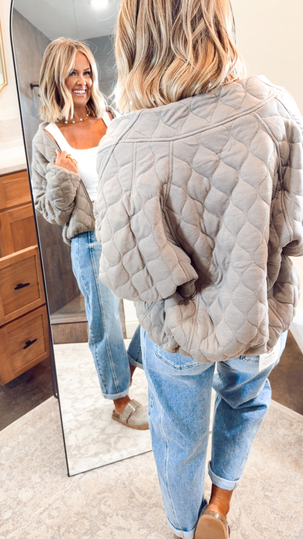 Naomi Quilted Bomber Jacket-Dk Taupe