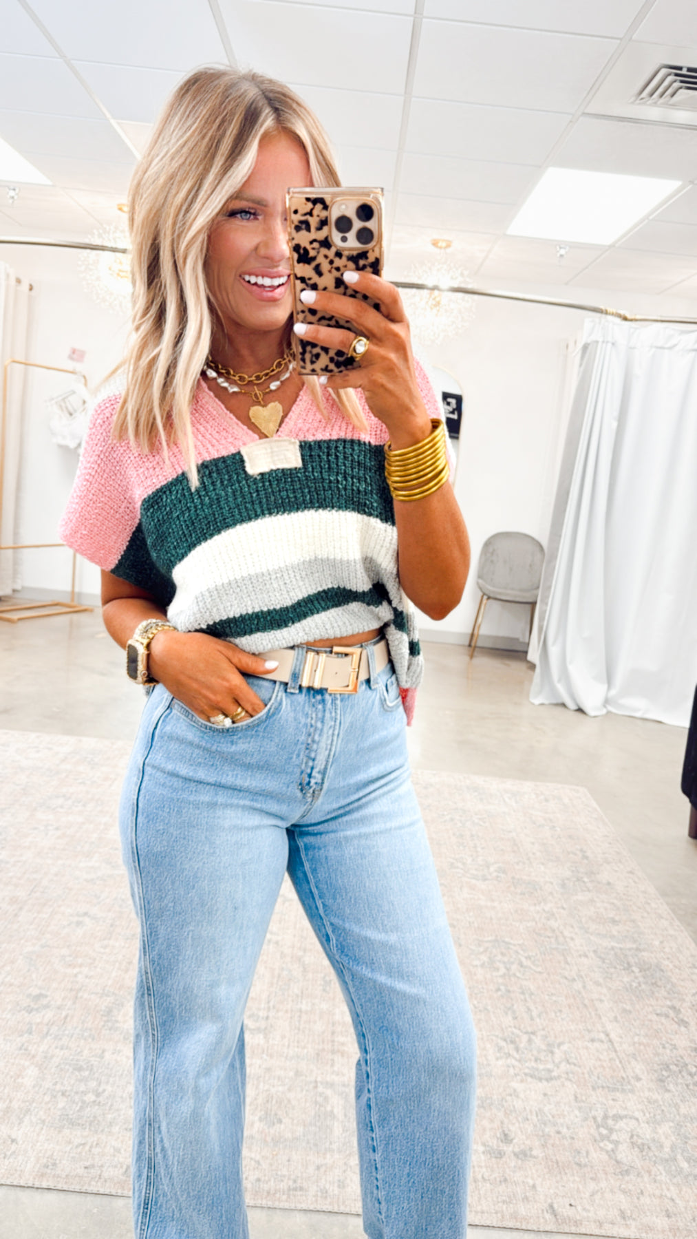 The Forest Bloom Cap Sleeve Sweater is the perfect blend of cozy and chic, designed to carry you effortlessly through the seasons. With its playful multicolor knit and easy silhouette, this piece is a throw-on-and-go essential that keeps you looking polished without the fuss.