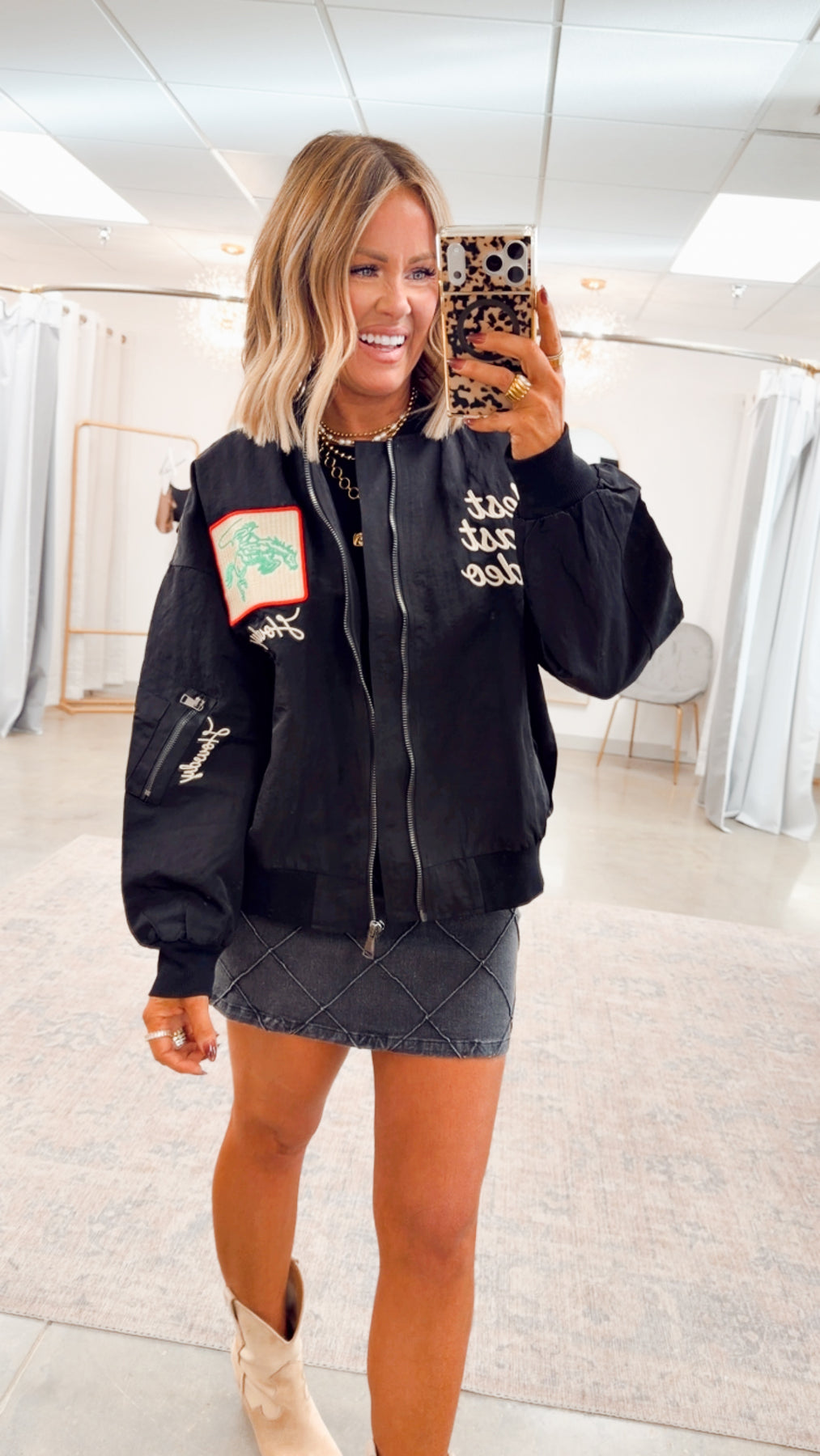 Whether you’re heading to a game, running errands, or adding a sporty layer to a casual outfit, this bomber jacket is a must-have you’ll reach for season after season.