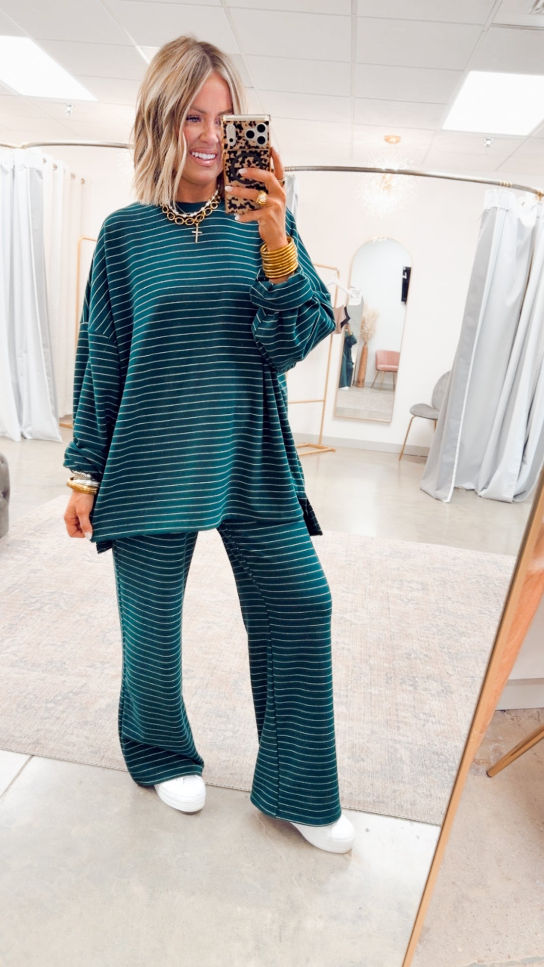 Lexi Striped Lounge Pants-Green/White
