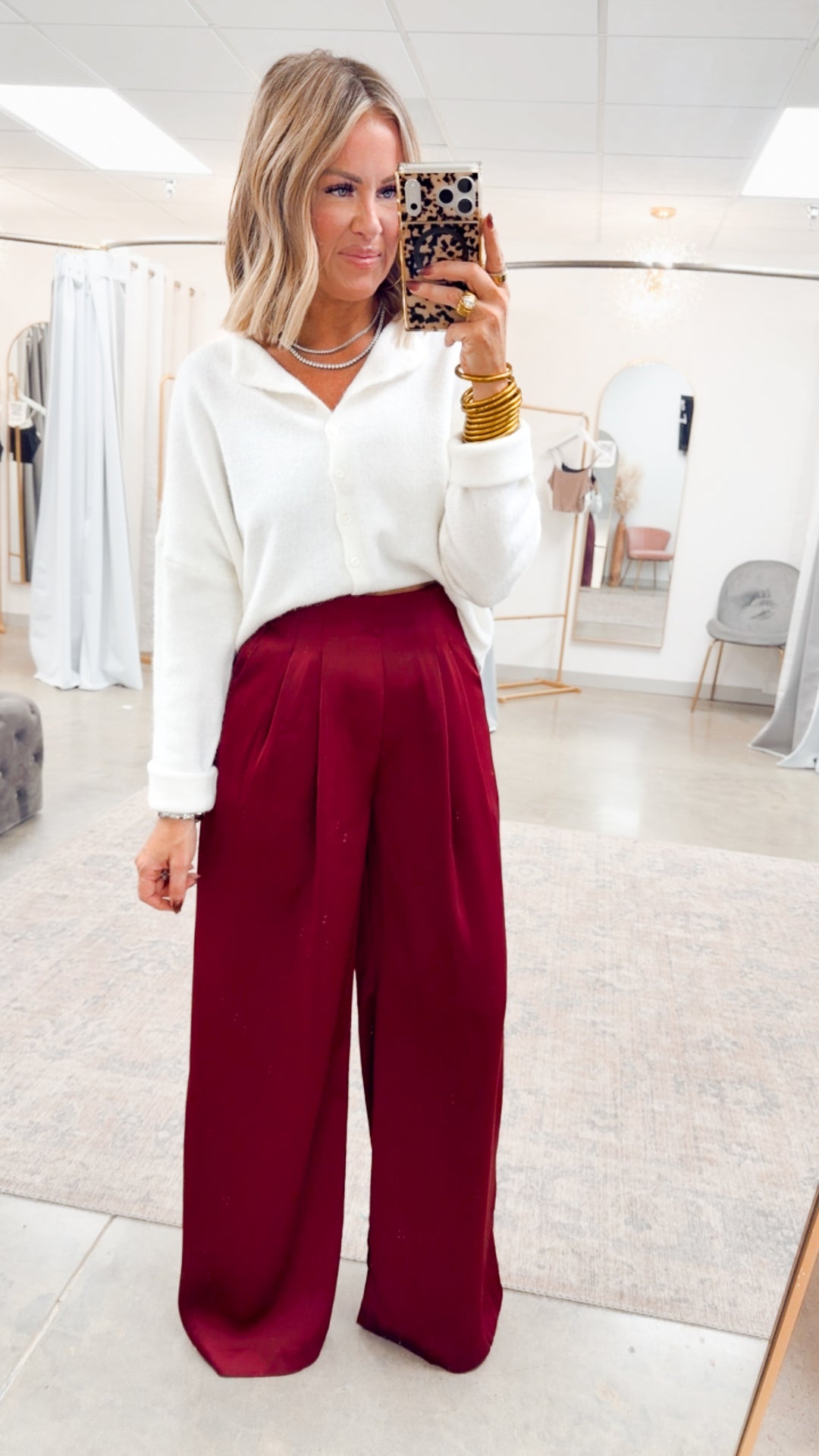Estelle Wide-Leg Pants-Burgundy