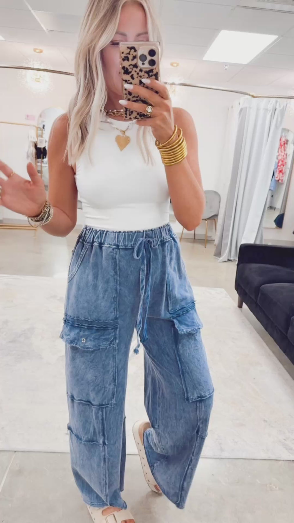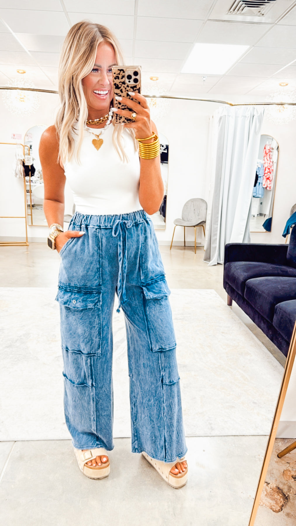 Meet your new go-to: the Hudson Wide Legs Cargo Pants — a perfect blend of cozy, cool, and functional. Designed with a mineral-washed finish and crafted in ultra-soft terry fabric, these pants feature a wide-leg silhouette and plenty of pockets for that laid-back, utility-chic vibe. Whether you're lounging, traveling, or running errands, these cargos will keep you comfy and stylish all day long.