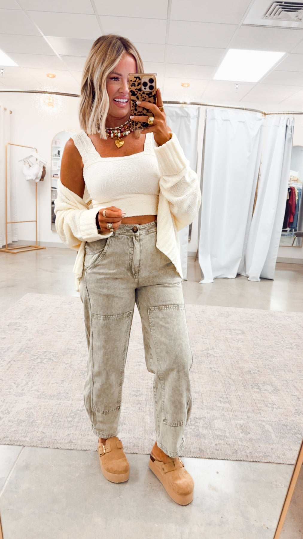 Step into effortless style with the Olive Grove Mineral Wash Barrel Jeans. Crafted from 100% cotton with a soft mineral-washed finish, these mid-rise jeans feature a wide leg with subtle barrel shaping for a relaxed yet modern silhouette. The olive hue adds a fresh, earthy touch—perfect for pairing with everything from tees to tucked-in blouses.