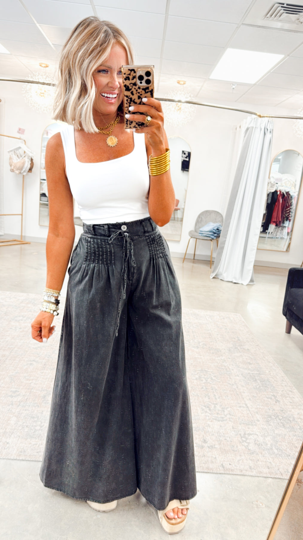 Wide-leg silhouette for a relaxed, on-trend look