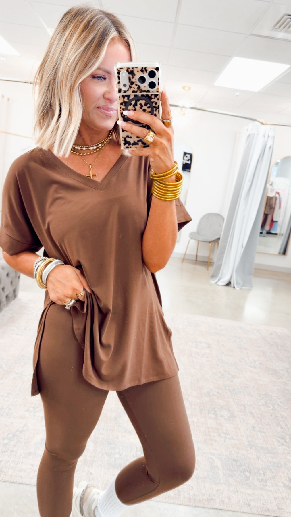 Relax in ultimate comfort with the Plush Cloud Lounge Set, crafted from brushed DTY microfiber that feels buttery soft against the skin. This loungewear set provides perfect stretch and recovery, ensuring a flattering fit that moves with you. The top features a relaxed design with a total body length of 28" (front) and a bust measurement of 43" (measured from small), while the leggings offer a comfortable waistband and a 25" inseam for a snug, cozy fit. Ideal for lounging or casual outings, this set brings a touch of luxury to your everyday wear.