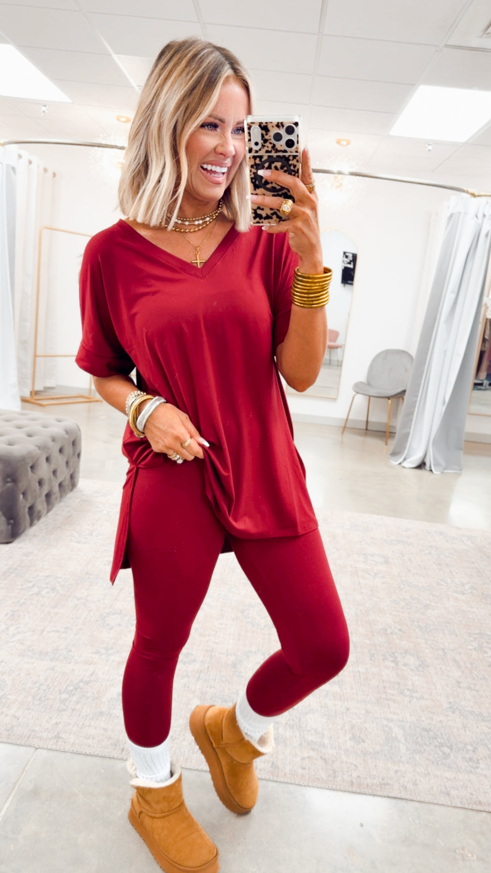 Relax in ultimate comfort with the Plush Cloud Lounge Set, crafted from brushed DTY microfiber that feels buttery soft against the skin. This loungewear set provides perfect stretch and recovery, ensuring a flattering fit that moves with you. The top features a relaxed design with a total body length of 28" (front) and a bust measurement of 43" (measured from small), while the leggings offer a comfortable waistband and a 25" inseam for a snug, cozy fit. Ideal for lounging or casual outings, this set brings a touch of luxury to your everyday wear.