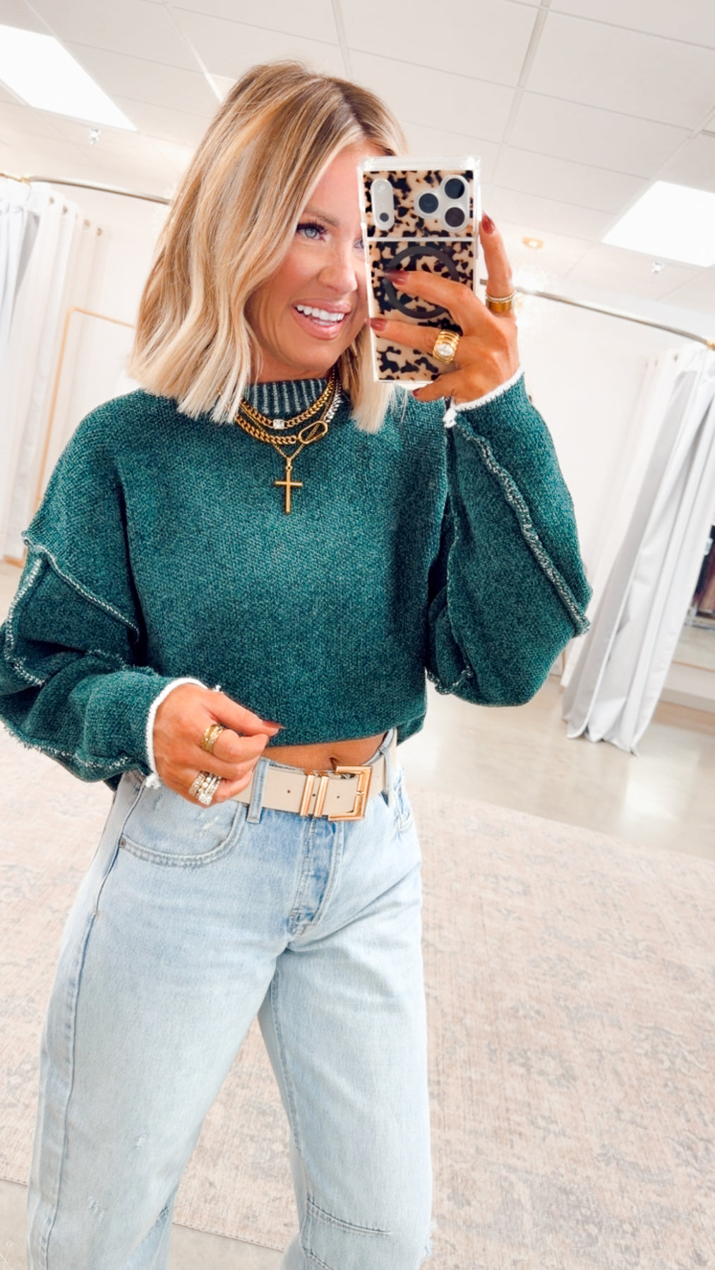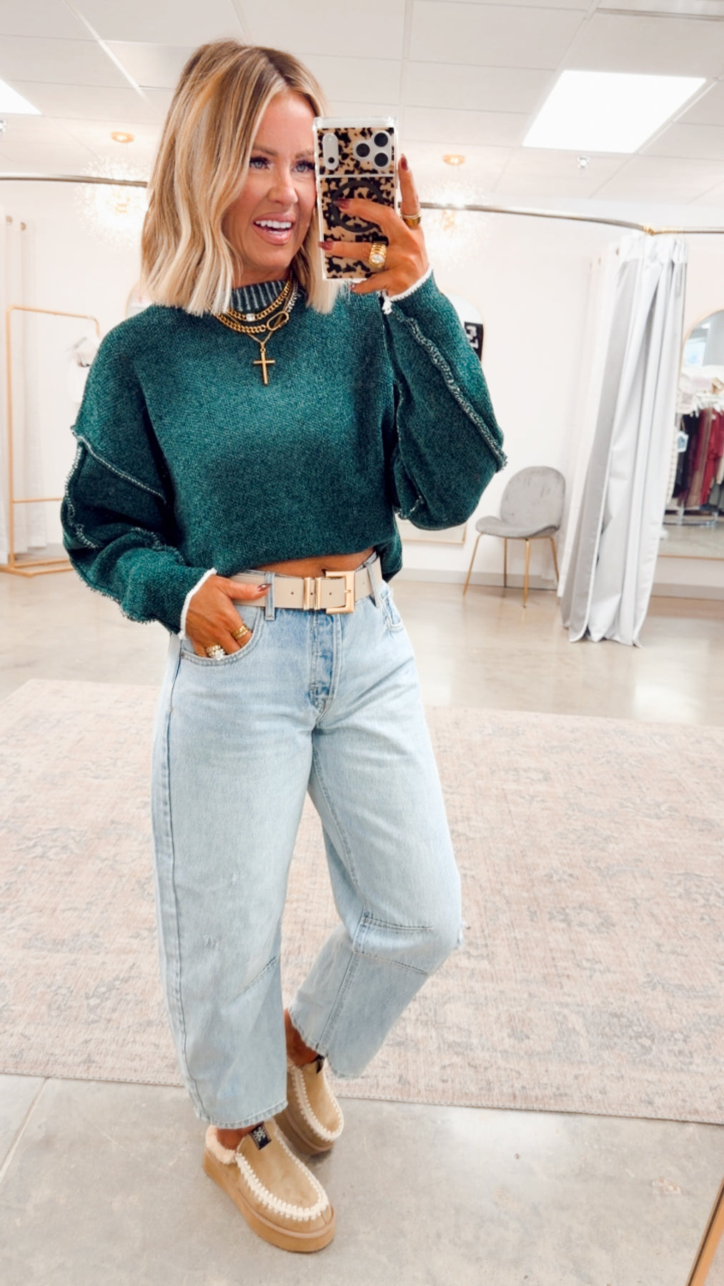 Stay warm and effortlessly stylish in the Waverly Exposed Seam Sweater, a cozy essential designed for laid-back comfort with a modern edge. Crafted with exposed seam detailing and a classic round neckline, this sweater blends casual charm with elevated texture. Its relaxed fit and soft knit make it the perfect everyday piece to pair with denim or leggings — cozy enough for lounging, yet polished enough for going out.