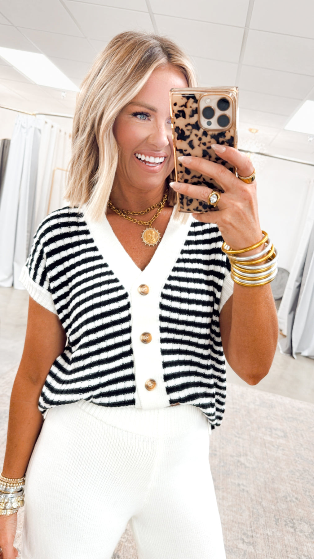 Effortlessly chic and cozy, the Callista Sweater Top & Pants Set is the perfect matching duo for fall lounging or casual days out. With its soft knit construction and classic stripe pattern, this set blends relaxed comfort with a put-together aesthetic you’ll love reaching for again and again.