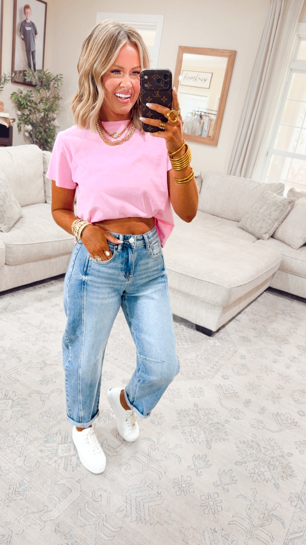The Classic Relaxed Crop Tee is your ultimate go-to essential — simple, effortless, and endlessly versatile. Designed with a clean, minimal look and a comfortable cropped length, this tee is made for those throw-on-and-go days when you still want to look put together. The relaxed fit and soft knit fabric make it perfect for everyday wear, whether you’re running errands, lounging, or styling it up with your favorite denim or layers.