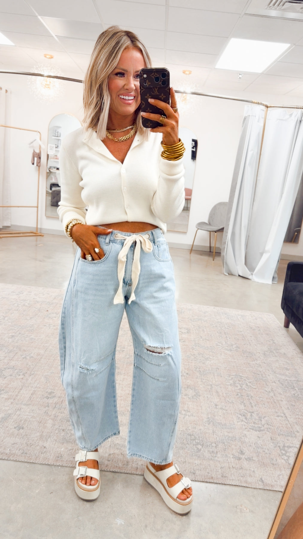 Trend-forward barrel leg silhouette