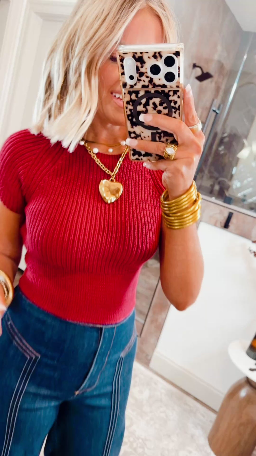 • Cropped silhouette pairs perfectly with high-rise denim or skirts