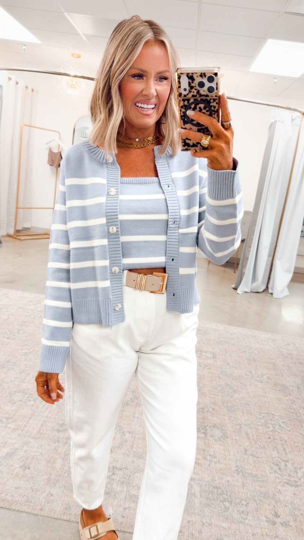 Elevate your layering game with the Hazelwood Cami & Cardigan Set—a chic duo that’s as effortless as it is elegant. Designed with timeless stripes and thoughtful details, this set blends comfort with a lavish, polished look. Whether worn together for a put-together ensemble or styled separately, it’s the perfect transitional set for fall and beyond.