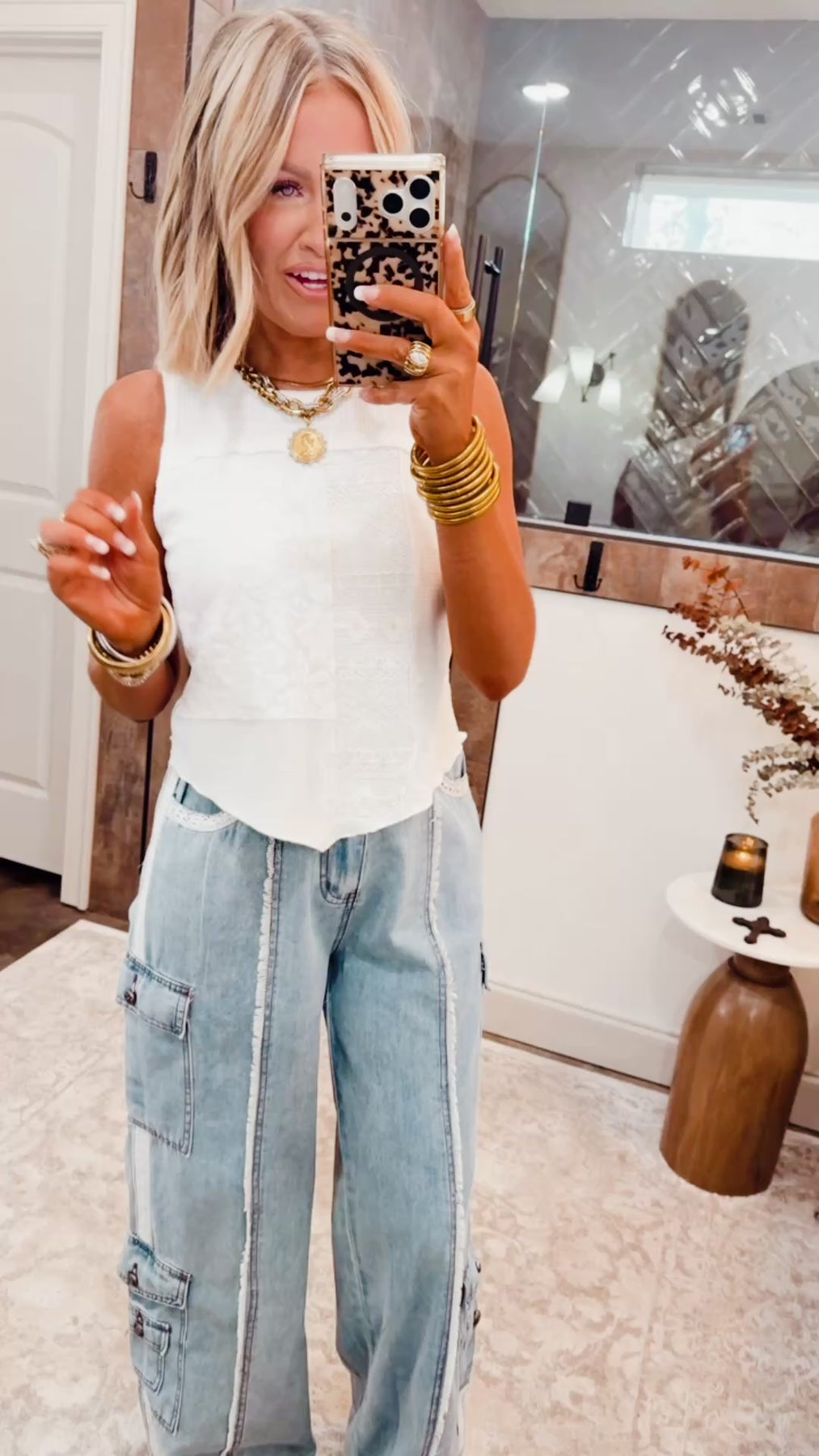 Lightweight and easy to style, Lola is perfect for pairing with high-rise denim, relaxed drawstring bottoms, or layered under an open button-down or jacket. Whether worn solo on warm days or styled for transitional seasons, this tank brings just the right mix of cute, polished, and effortlessly cool.