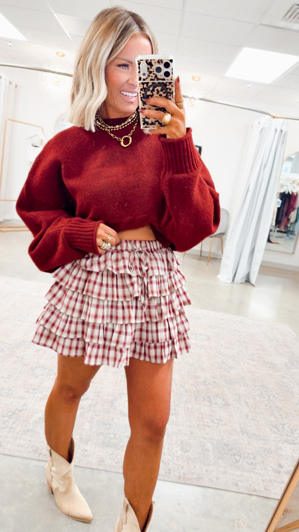 This skirt is your playful staple for coffee dates, game days, or holiday outings!