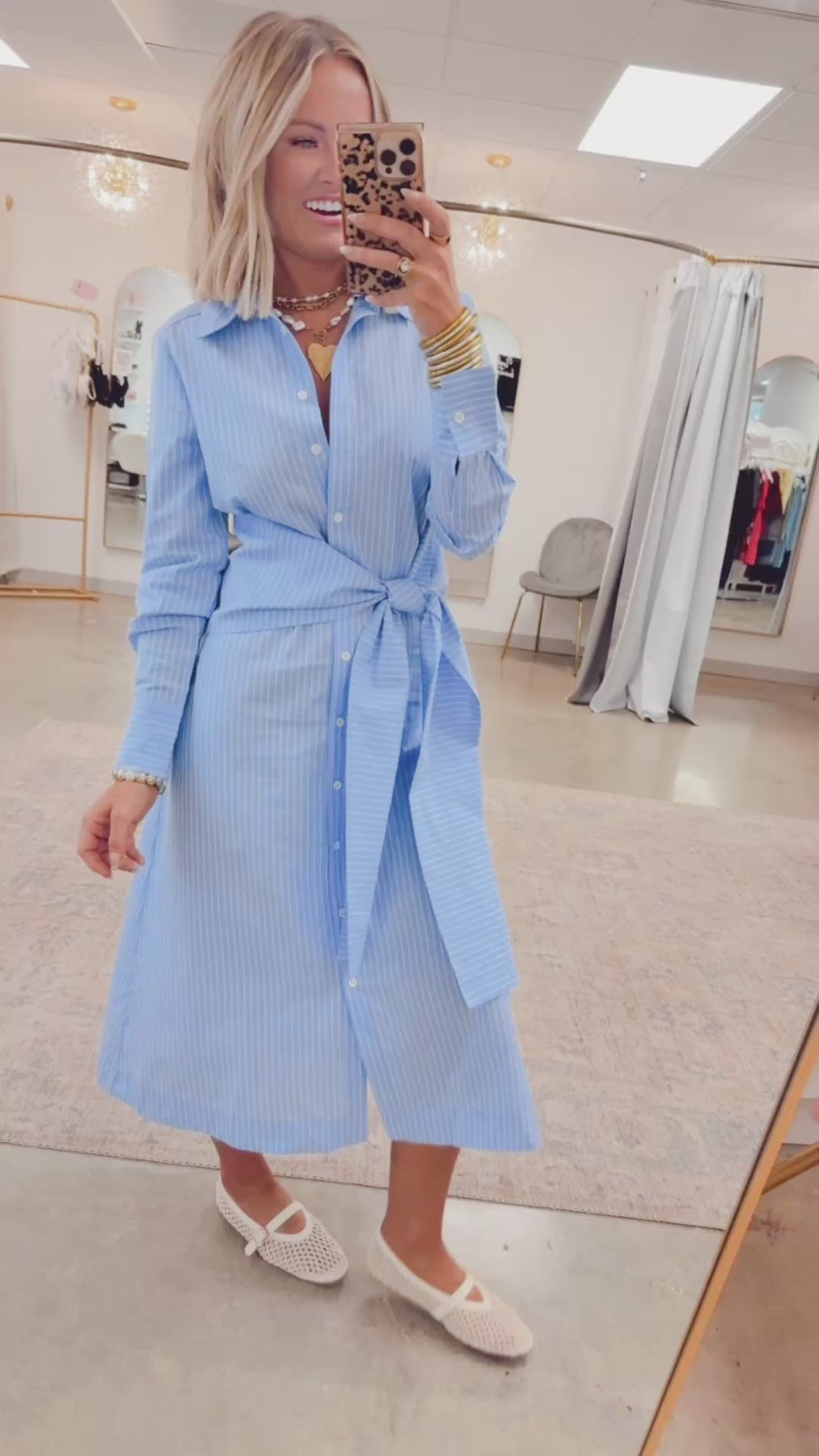 Elevate your everyday look with The Knot Midi Dress, where timeless stripes meet chic detailing. Designed with functional buttons from top to bottom and finished with a statement tie-front detail, this dress blends casual charm with elevated sophistication. Perfect for brunches, office days, or an easy weekend outing, it’s the effortless piece you’ll reach for again and again.