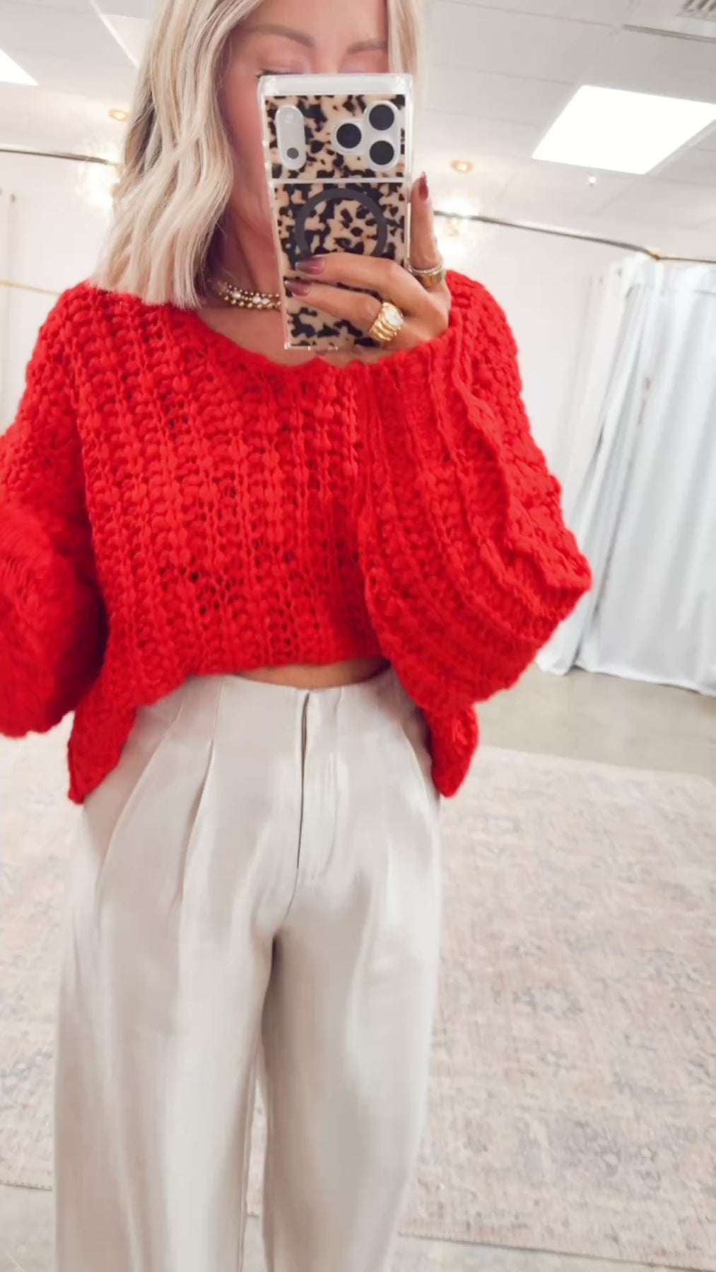 SIZE & FIT: Wearing true size small. Please reference size chart for detailed model measurements.