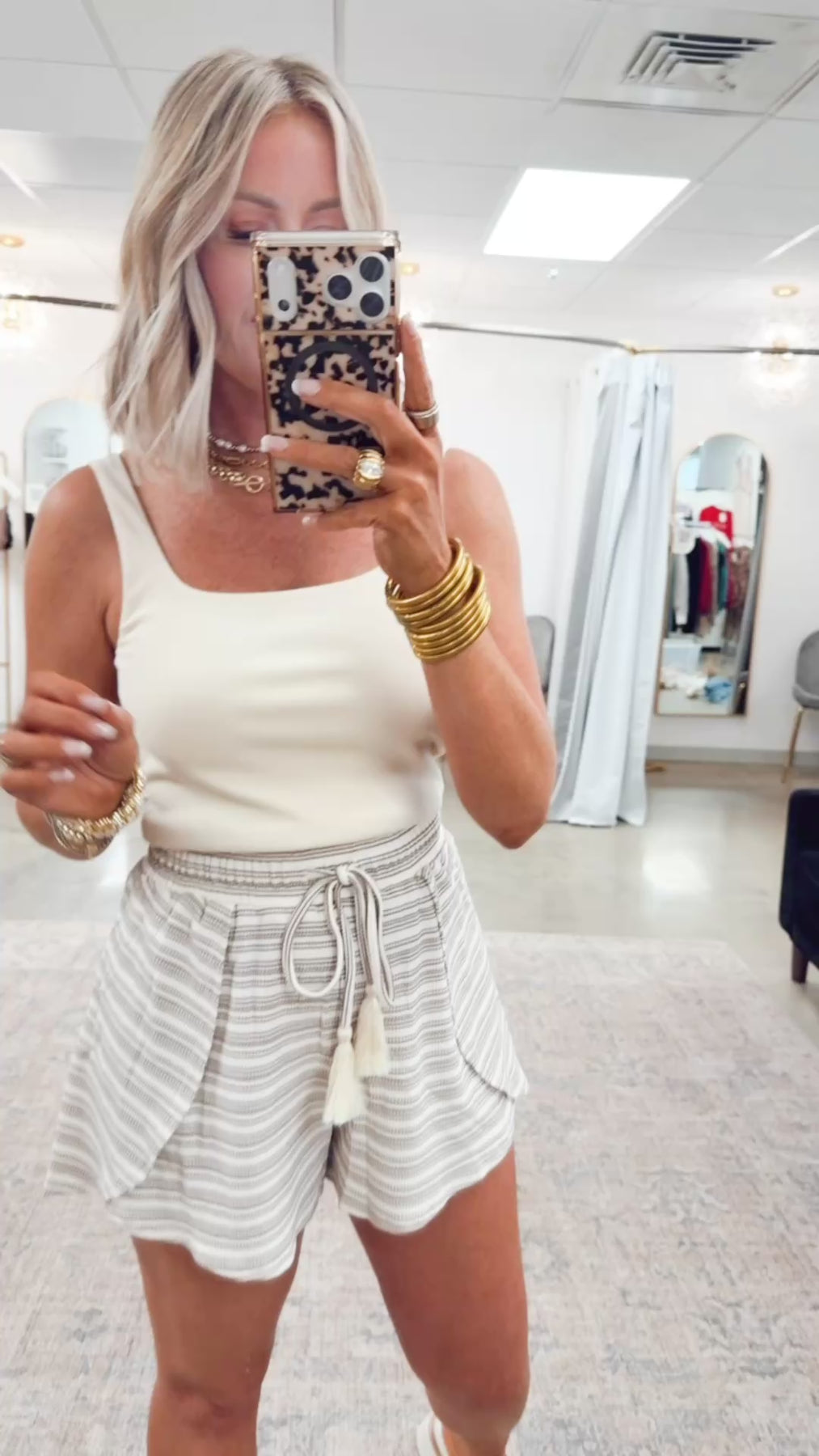 Easy, breezy, and effortlessly cute, the Holland Striped Romper is your go-to piece for warm days and laid-back plans. Designed with a playful striped bottom and a softly cinched waist, this romper blends comfort with just the right amount of charm. The lightweight, flowy fabric drapes beautifully, making it perfect for everything from beach strolls to casual brunch dates.