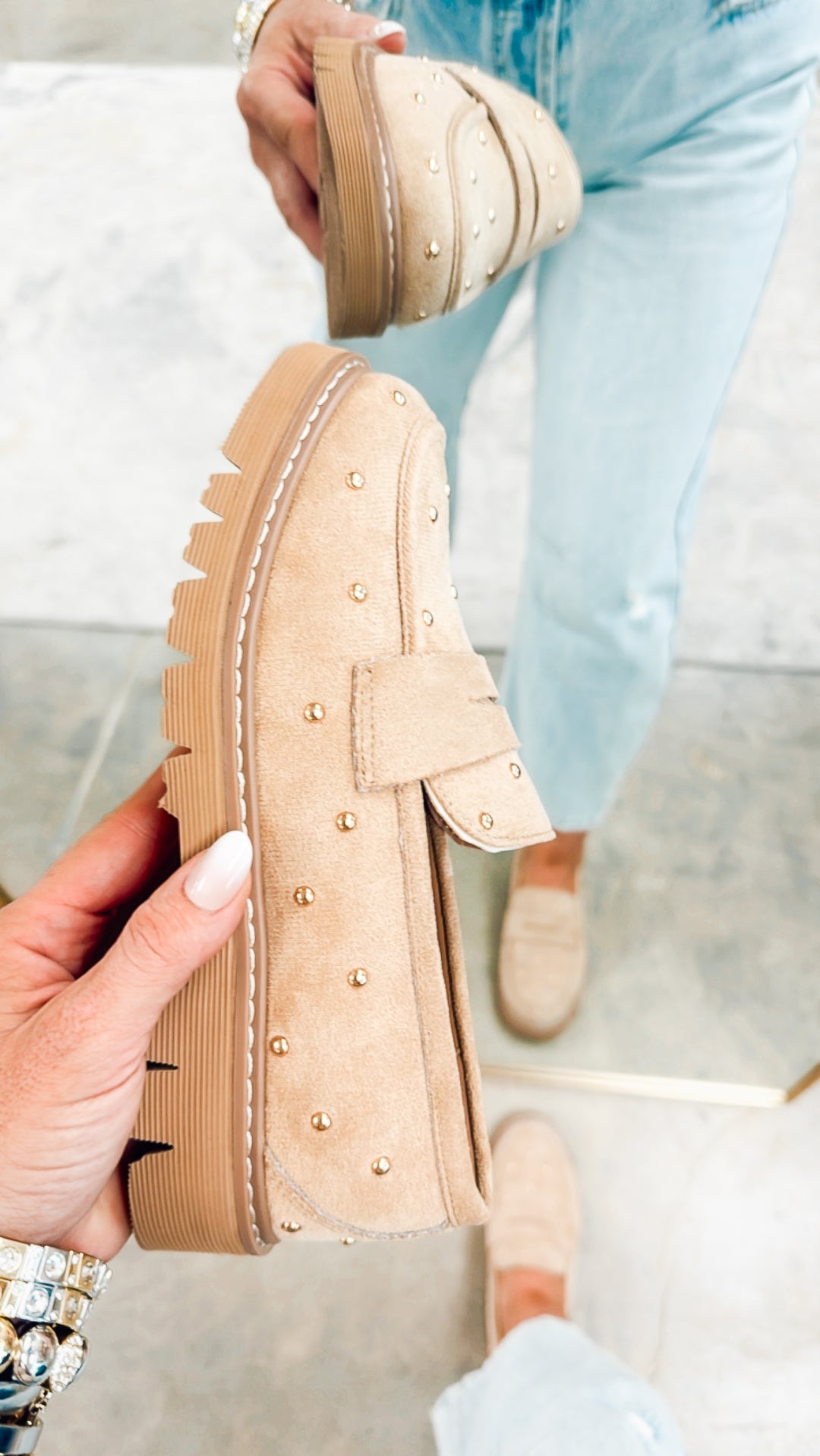 Corkys Stud Muffin Loafers -Sand Faux Suede