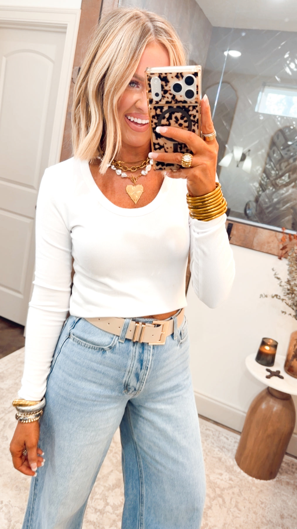 The clean scoop neckline creates a timeless, feminine silhouette that’s perfect for styling alone or layering under jackets, cardigans, vests, flannels, and more. From casual days to polished outfits, this top brings effortless versatility and everyday ease to any look.