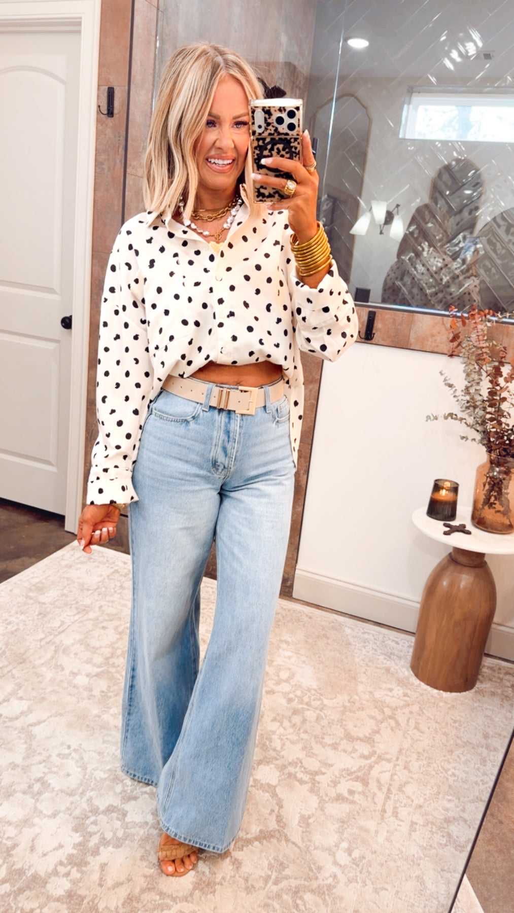 Timeless with a playful twist, the Classic Polka Dot Blouse is the ultimate wardrobe staple. With its crisp white base and chic black polka dots, this blouse balances sophistication and fun. Dress it up for the office or wear it casually on the weekends — either way, it’s a go-to piece you’ll reach for again and again.