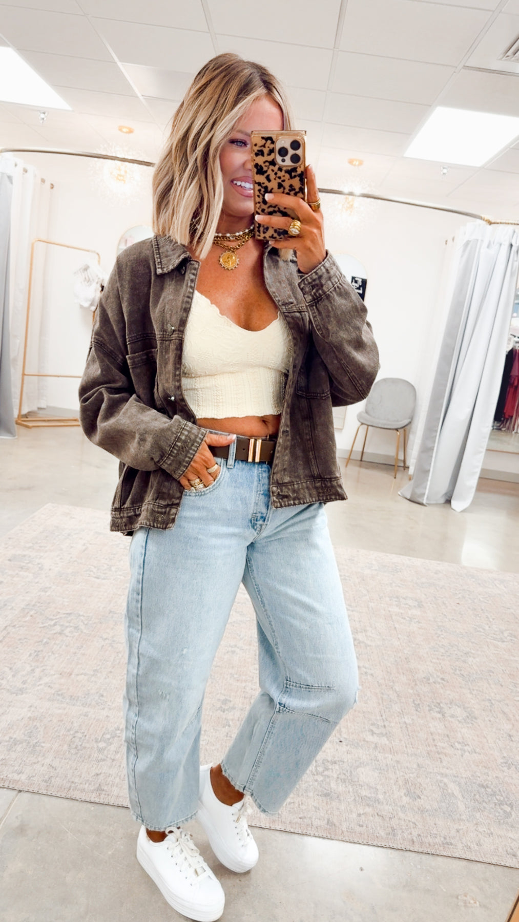 Classic, versatile, and effortless — the Oak Ridge Denim Jacket is the perfect layer for fall. Designed with functional pockets and an easy throw-on-and-go style, this jacket instantly elevates any outfit. Whether you’re pairing it with a tee and leggings for casual days or layering over a dress for a more polished look, this piece is a timeless closet staple you’ll wear on repeat.