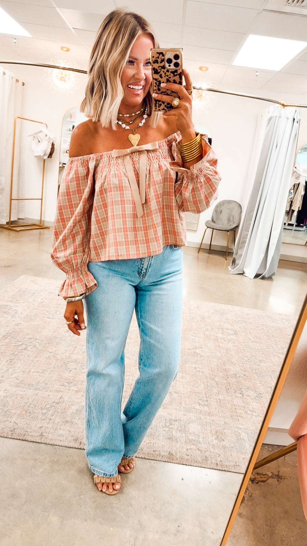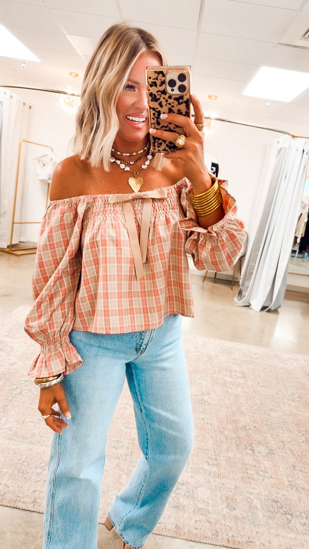 Charming and picture-perfect, the Sweetheart Plaid Top is made for all your fall moments. Designed with a flattering square neckline, bow tie detail, and 3/4 sleeves, this blouse blends feminine touches with a cozy seasonal vibe. The soft pastel plaid makes it an instant favorite for pumpkin patch outings, fall festivals, and every photo-worthy event.