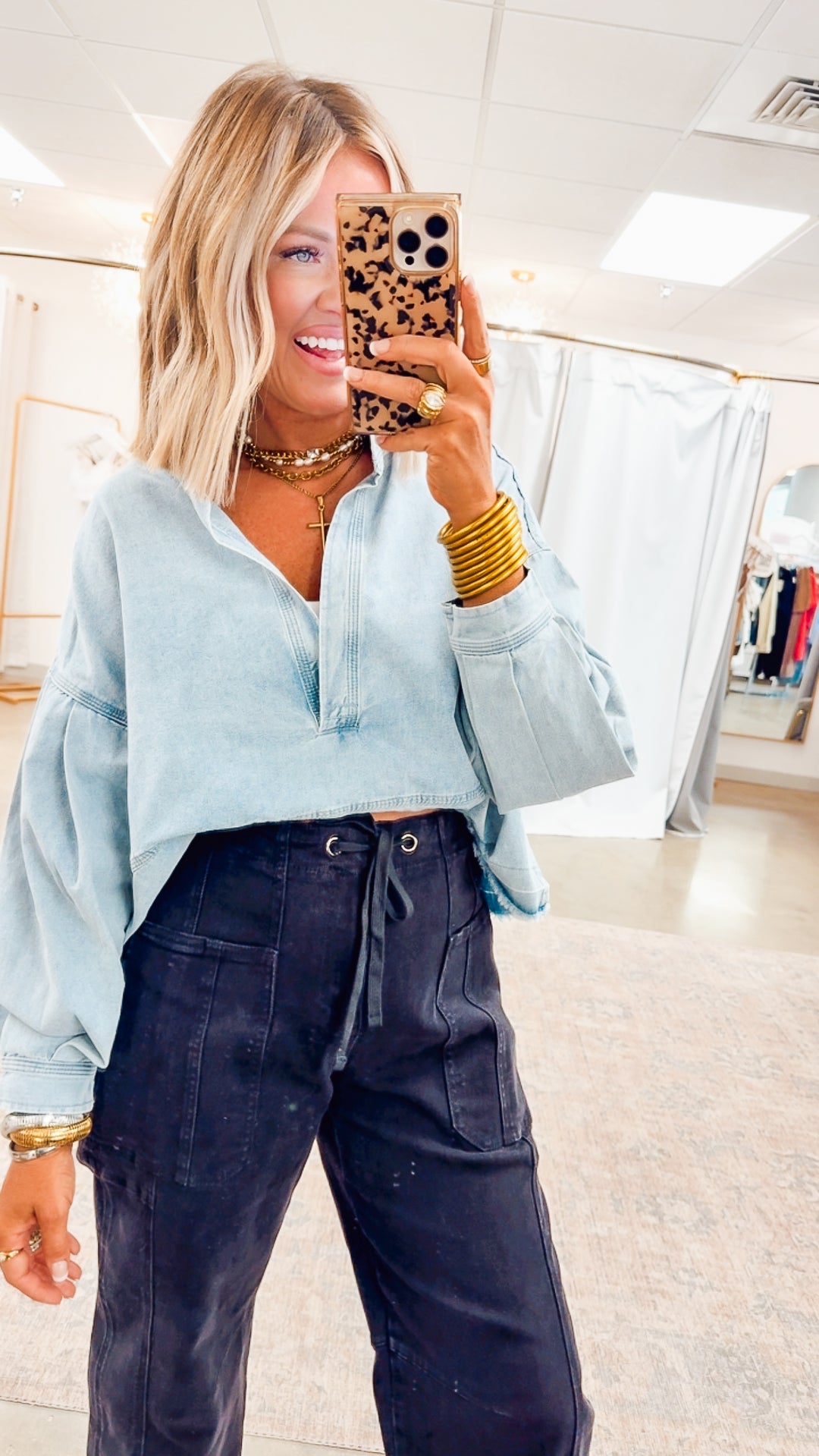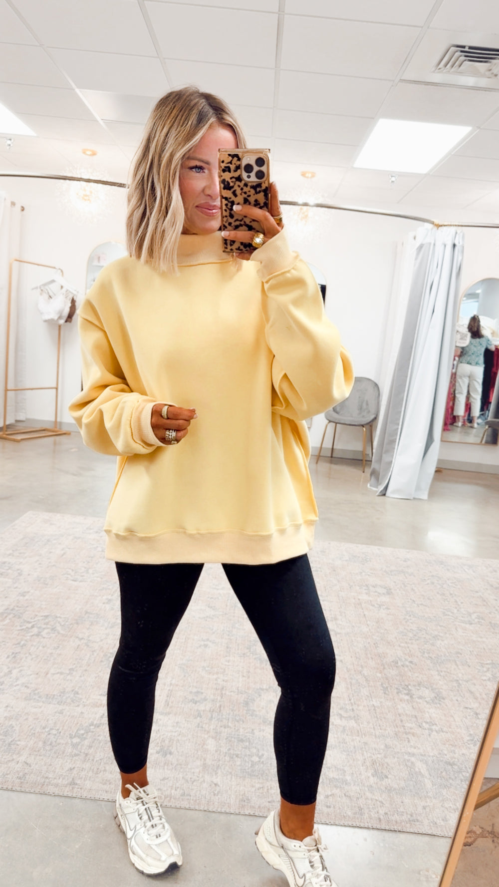 Butter Yellow Reversible Mock Neck Sweatshirt