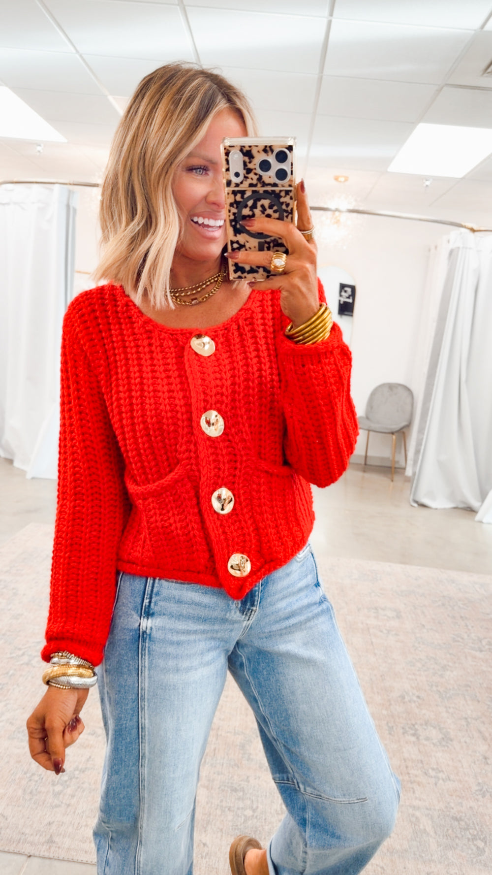 Callie Button Up Cardigan Top-Red