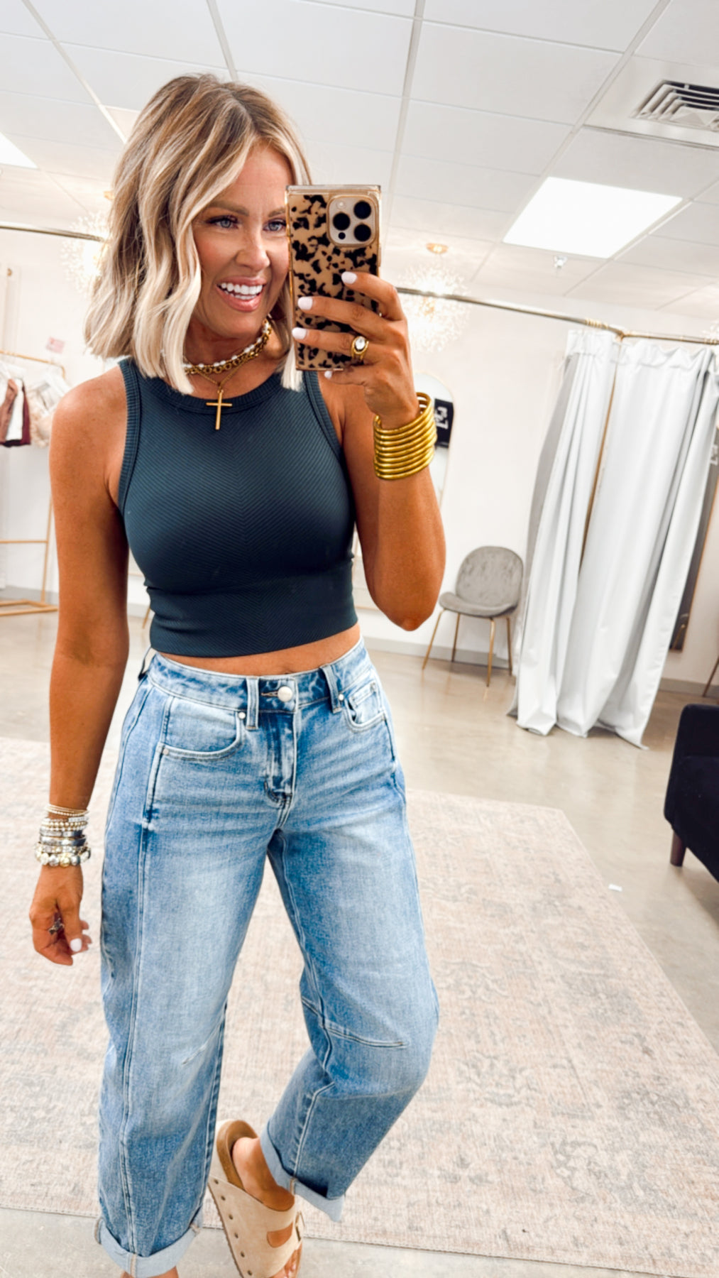 Our No. 1 Best Seller—the ultimate staple piece you’ll be reaching for again and again. Designed with a sleek high neckline and subtle chevron texture, this crop top is the perfect layering essential to elevate your fall wardrobe.
