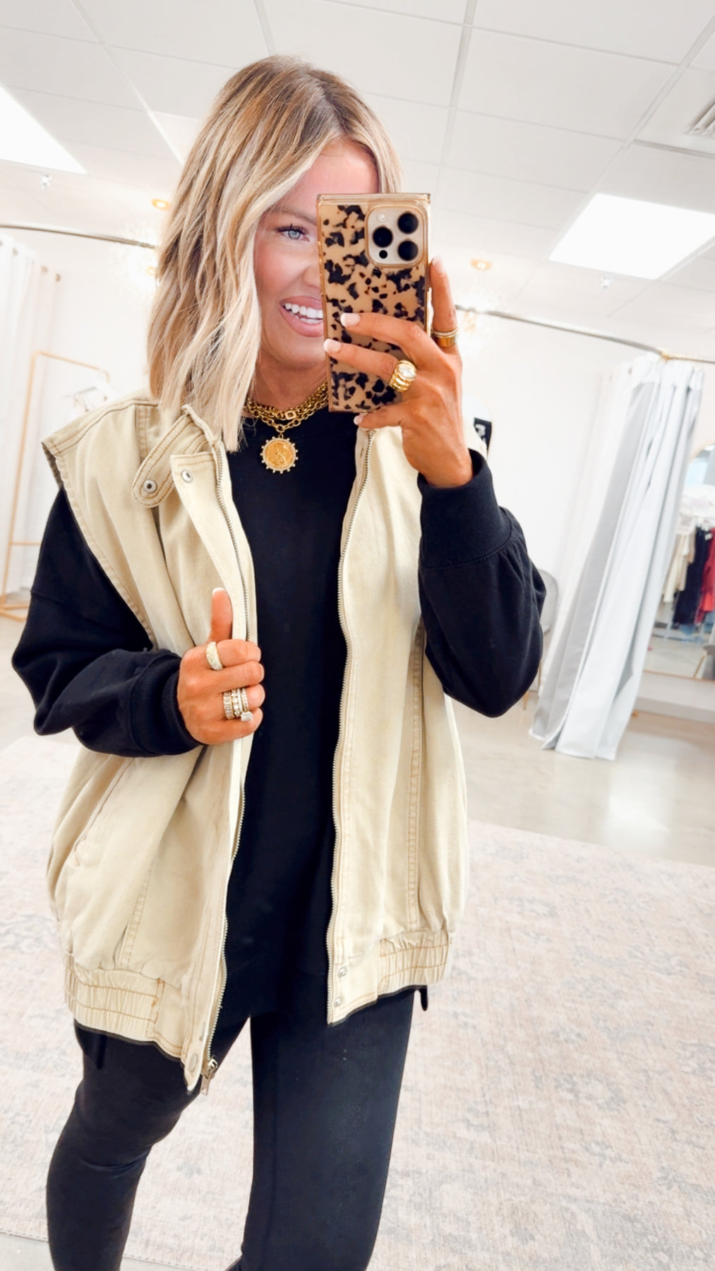 Styling Tip: Throw it over a fitted turtleneck with wide-leg pants for an elevated street-style look, or pair with a flowy dress to add contrast and a chic edge.
