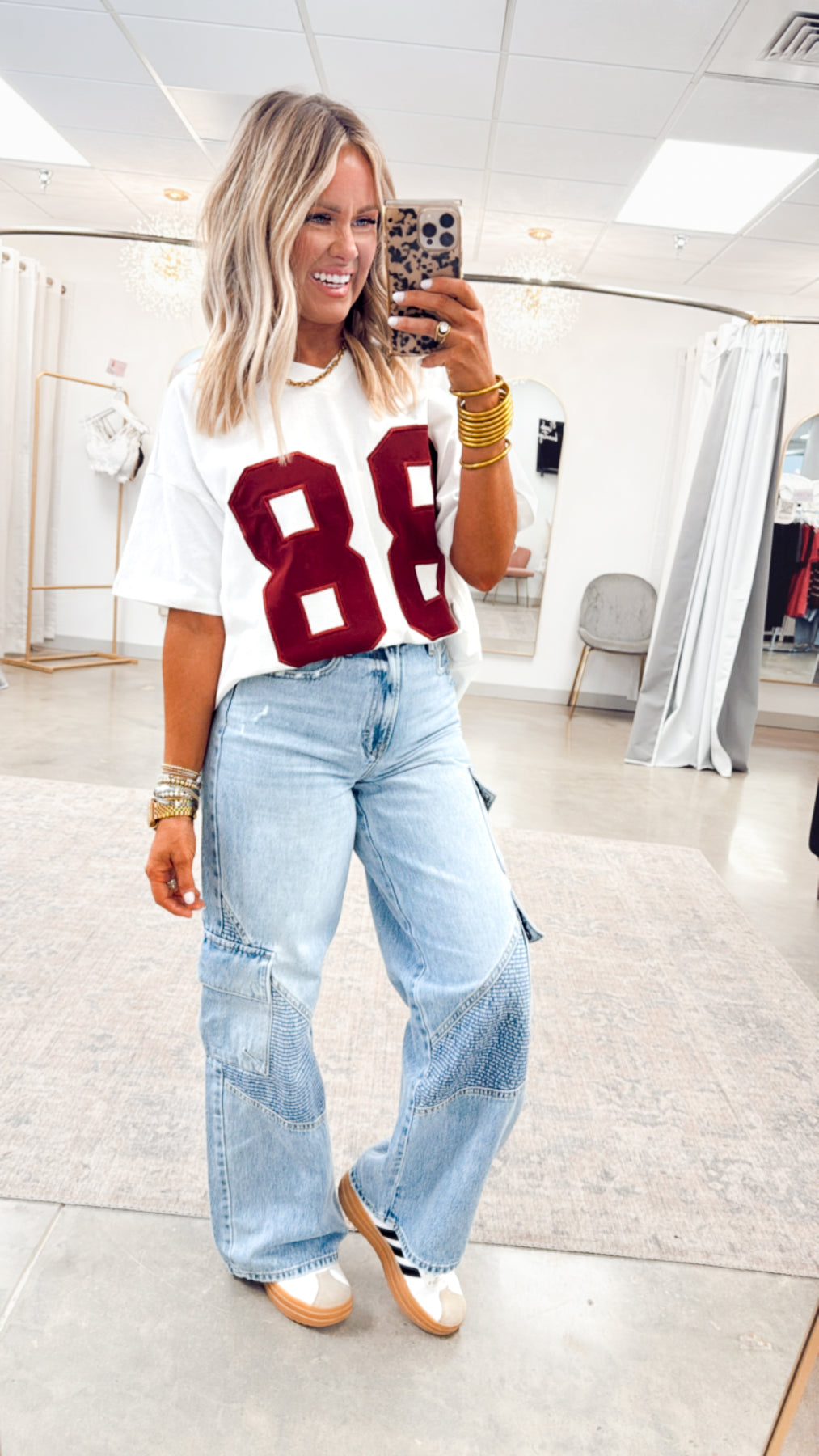 Styling Tip: Tie it up in a front knot with high-rise jeans and sneakers for a chic, game-day ready look!