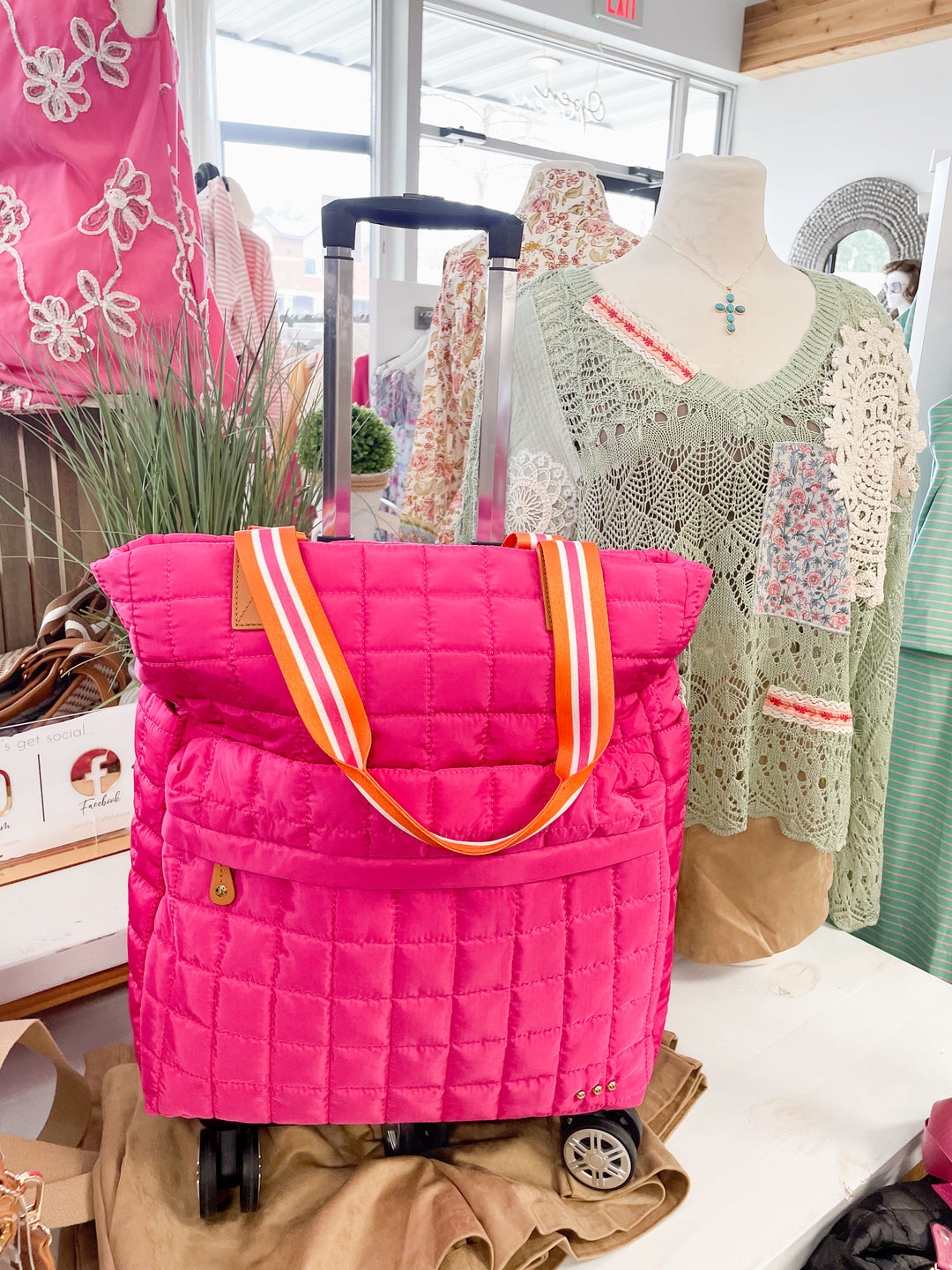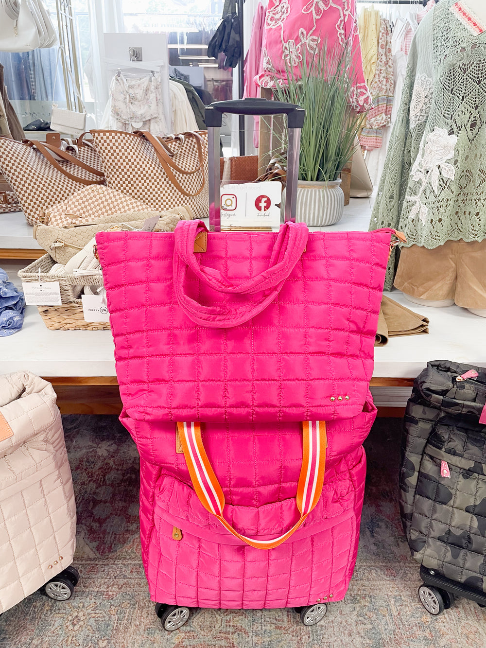 Tenley Quilted Tote Roller Bag-Pink
