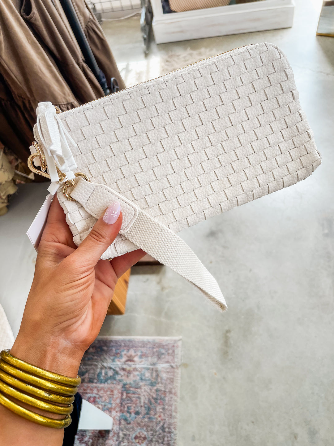 Emma Woven Clutch Wristlet-Cream