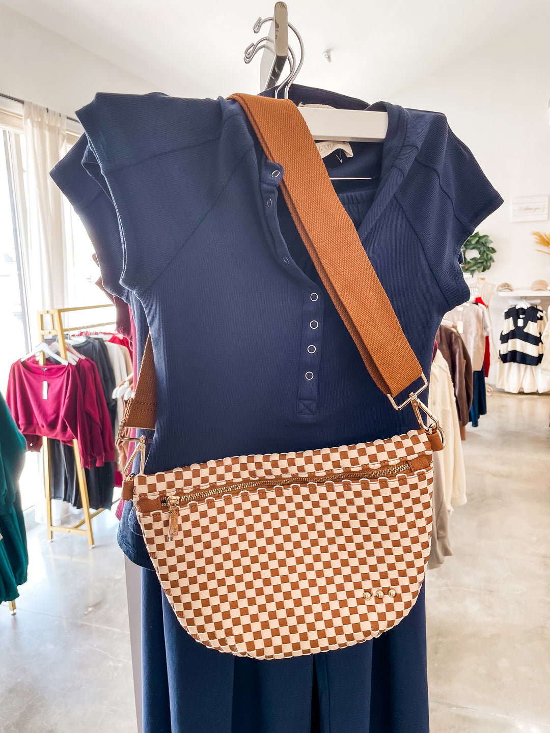Brown Checkered Westlyn Woven Bum Bag