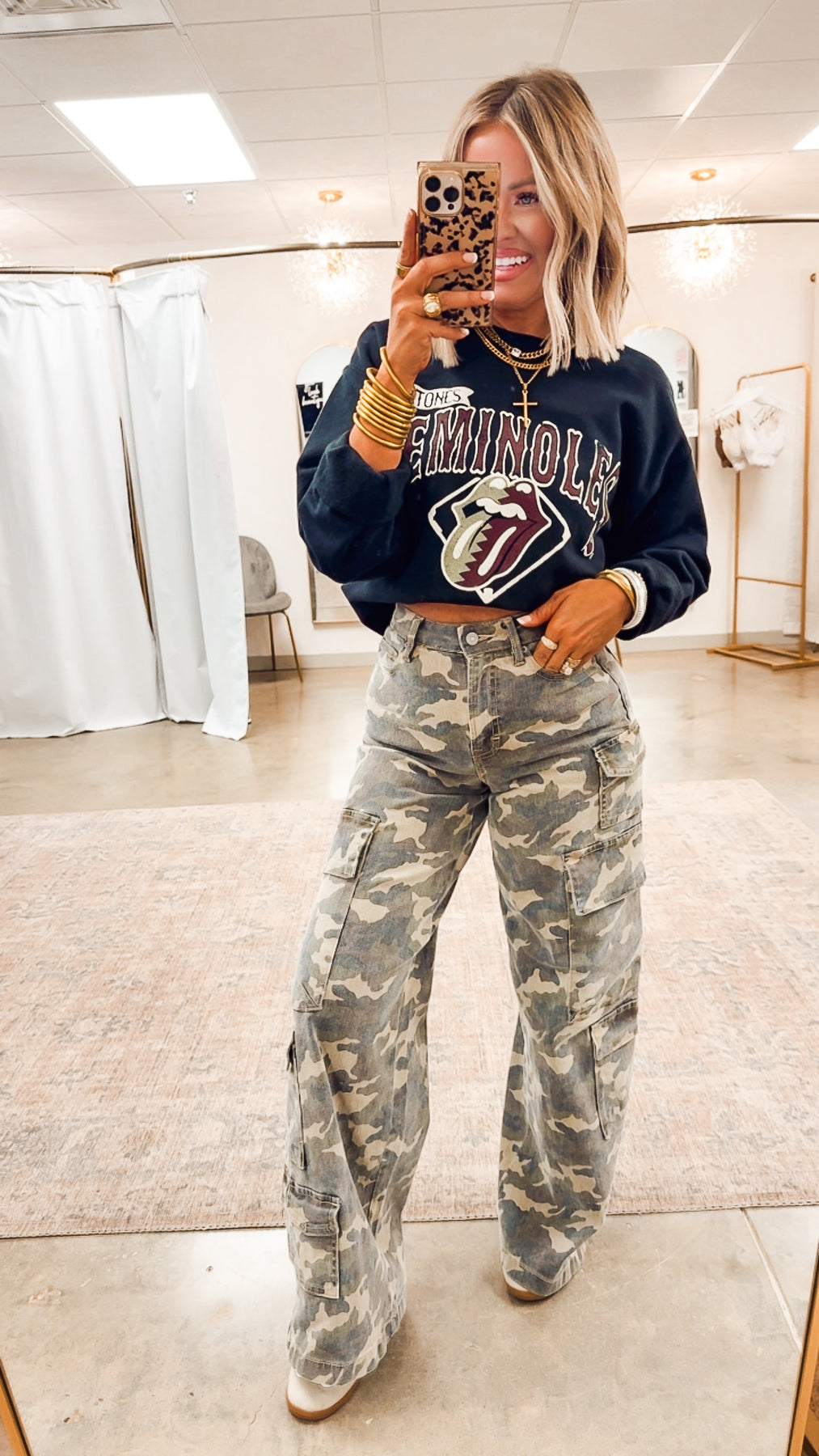 Show off your FSU Baseball pride with a rock-and-roll edge in the Rolling Stones Seminoles Diamond Sweatshirt. Vintage-inspired and meaningfully distressed, each sweatshirt has its own unique character, making it a true one-of-a-kind. Perfect for game days, laid-back weekends, or pairing with your favorite denim and sneakers for an effortlessly cool vibe.