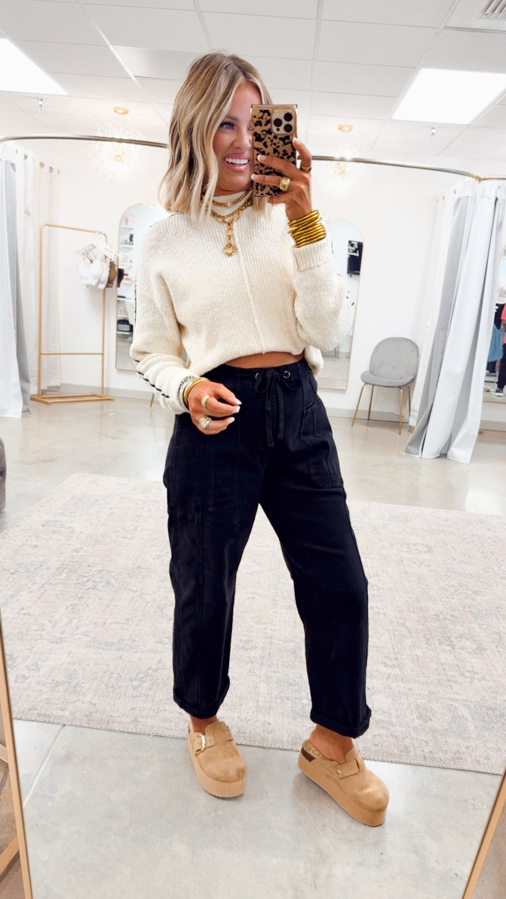 Vibe: The perfect blend of sweatshirt comfort with elevated sweater style
