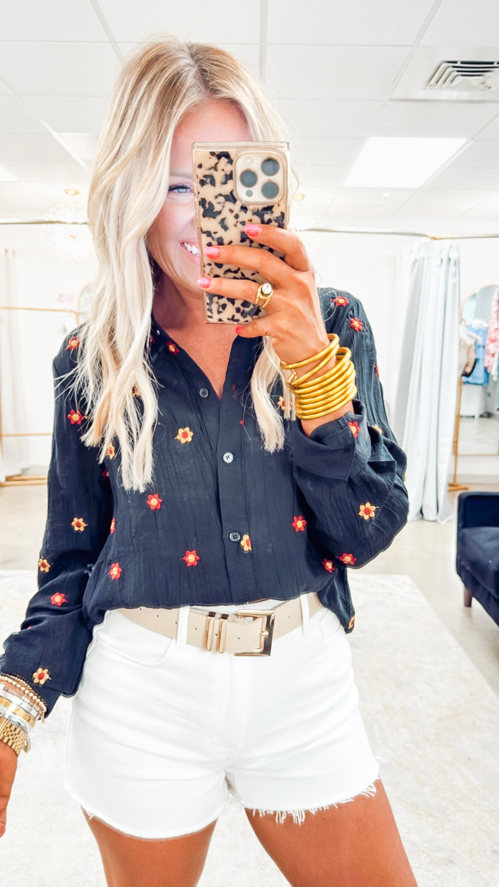 - Floral Embroidered Button-Down Top