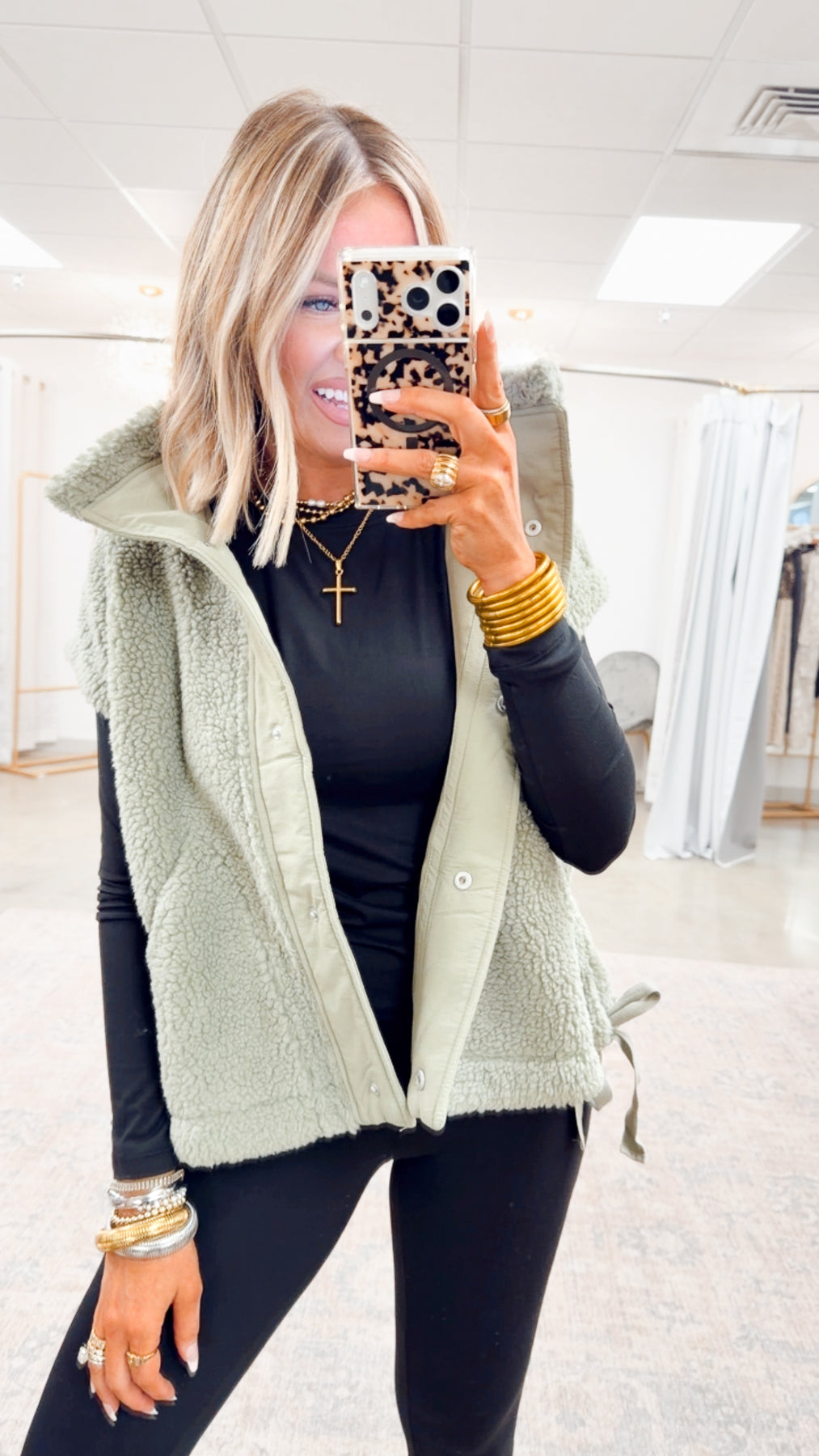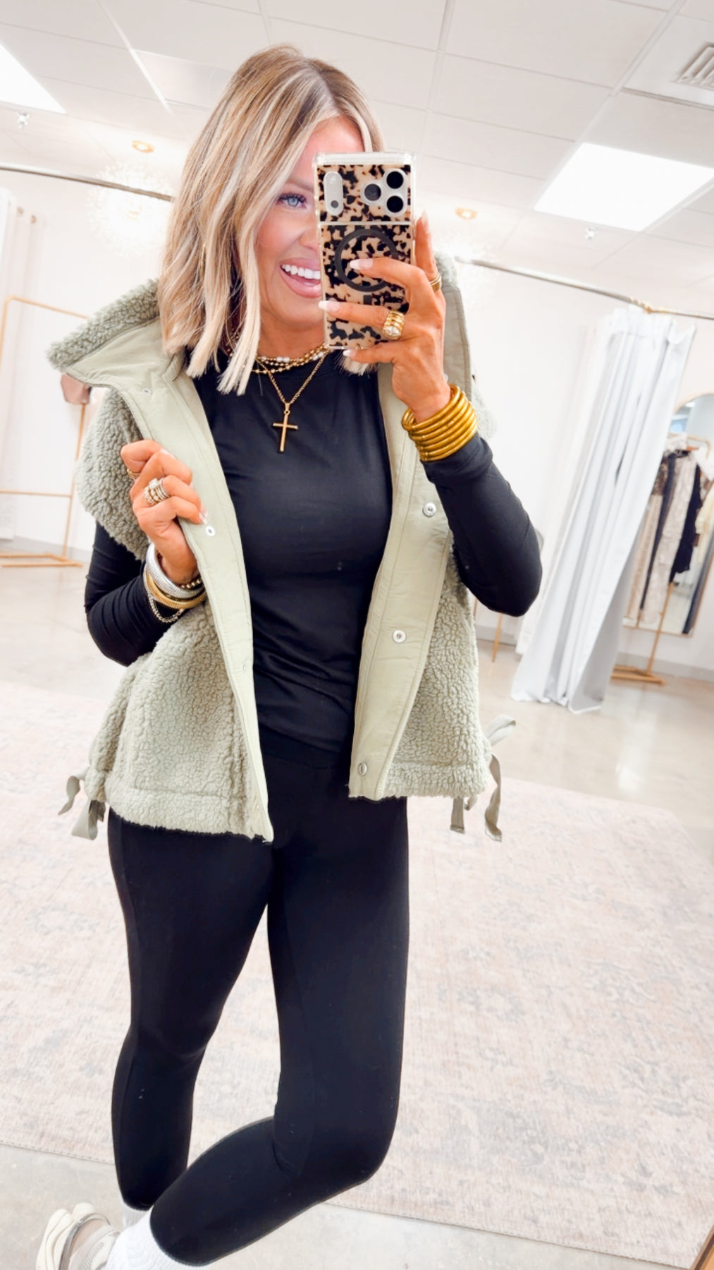 Embrace comfort and style with this chic Chalet Sherpa Vest, designed to be the perfect layering piece. Its cozy sherpa fabric and thoughtful details make it a must-have for transitioning between seasons. Whether you’re heading out for a breezy evening or running errands in the city, this vest keeps you warm without sacrificing style.