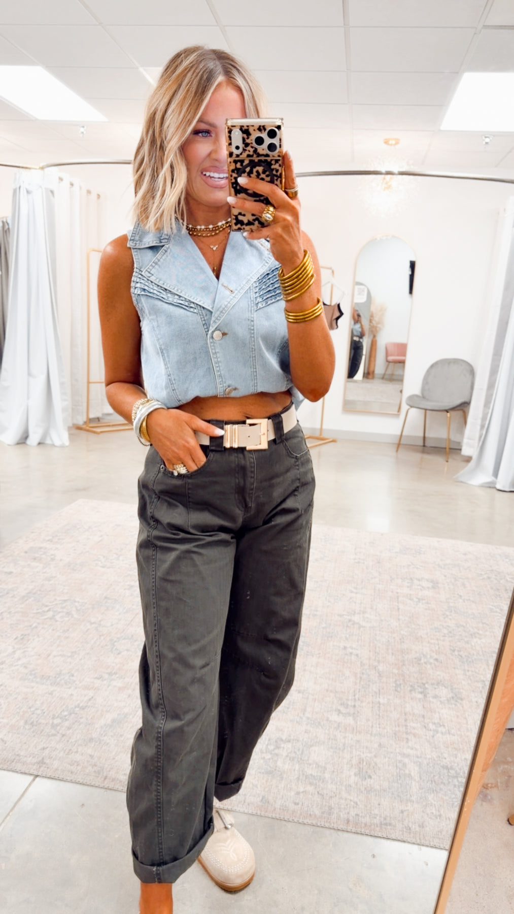 The Chic Western Denim Vest is where vintage cowgirl meets modern cool. Featuring a flattering tailored fit, pointed lapels, and subtle western-inspired stitching, this sleeveless piece adds instant edge to any outfit. Whether you're layering it over a tee or pairing it with wide-leg trousers, it's the kind of staple that gives every look a little extra attitude.