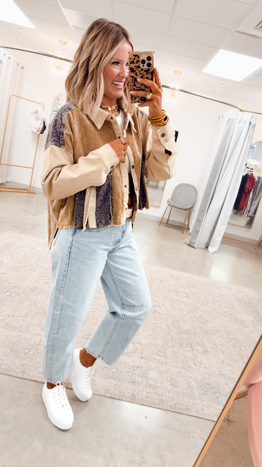 Add a pop of playful texture to your everyday wardrobe with the Corduroy Colorblock Top. Designed with a soft mineral wash and cozy corduroy fabric, this relaxed fit piece is as versatile as it is stylish. Whether you’re layering it over a tank for cool mornings or wearing it solo with denim for a laid-back day out, this top brings effortless charm to any outfit.