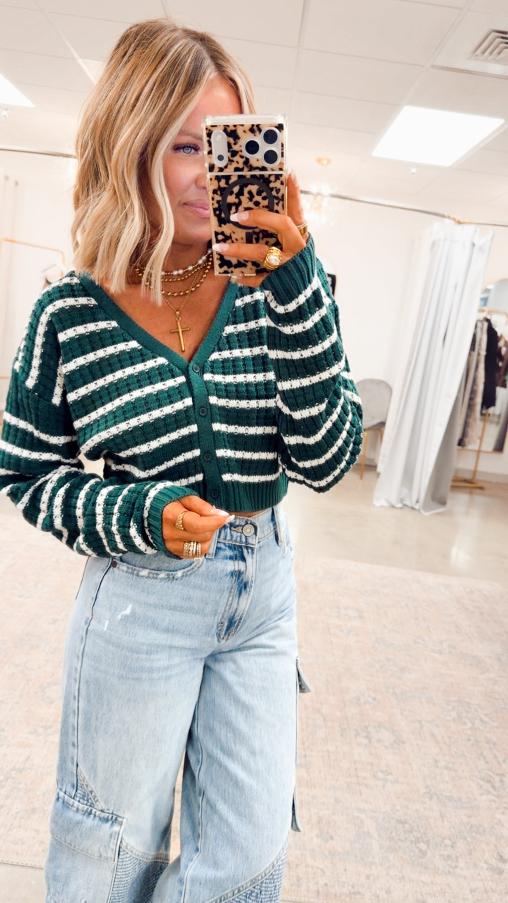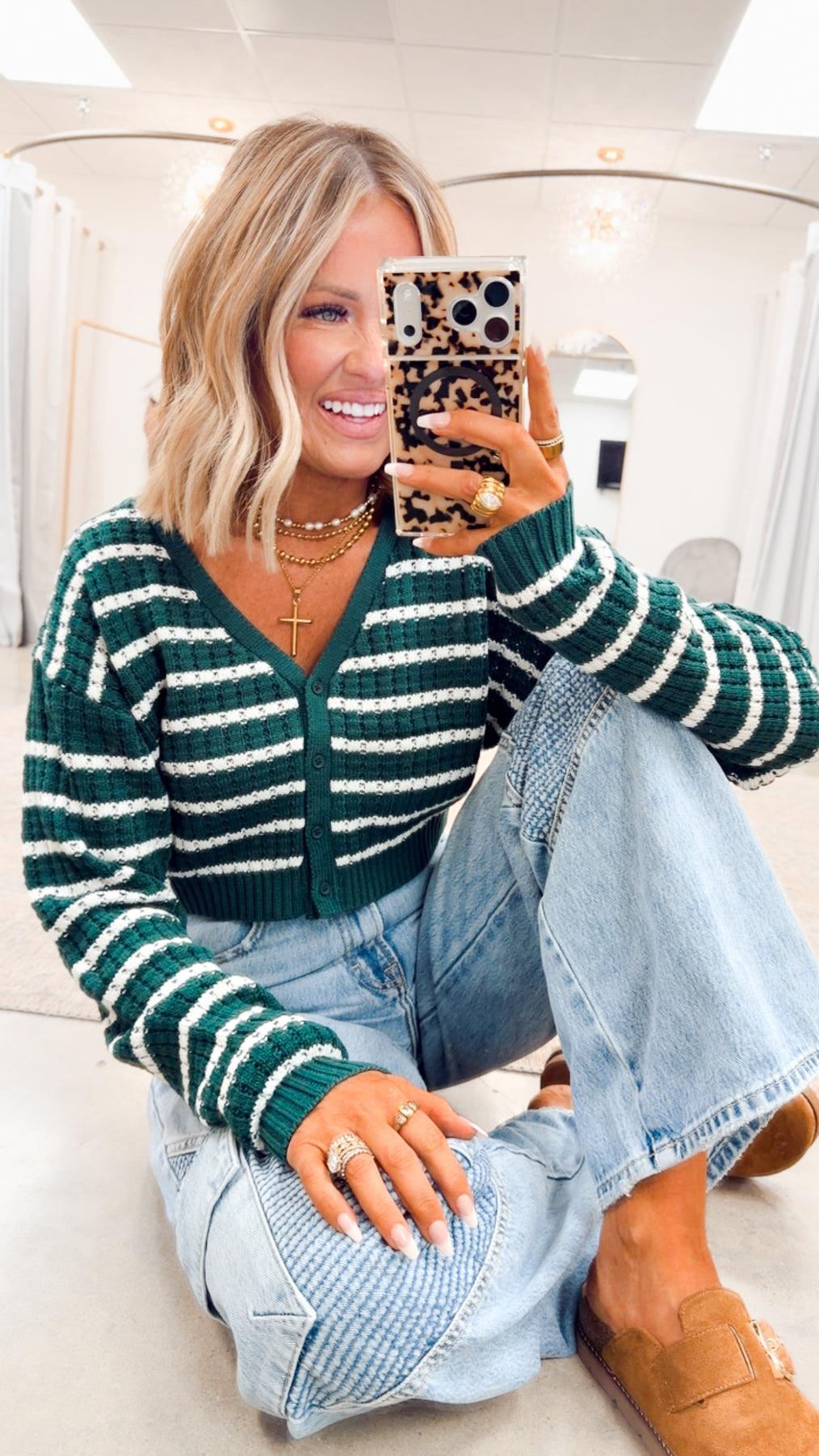 Fall fashion feels extra cozy with the Harbor Striped Cardigan Top — the perfect blend of cute, classic, and effortlessly wearable. Designed with a timeless stripe pattern, this sweater cardigan features a flattering V-neckline that flows into a button-down bodice for that perfect mix of sweet and polished.