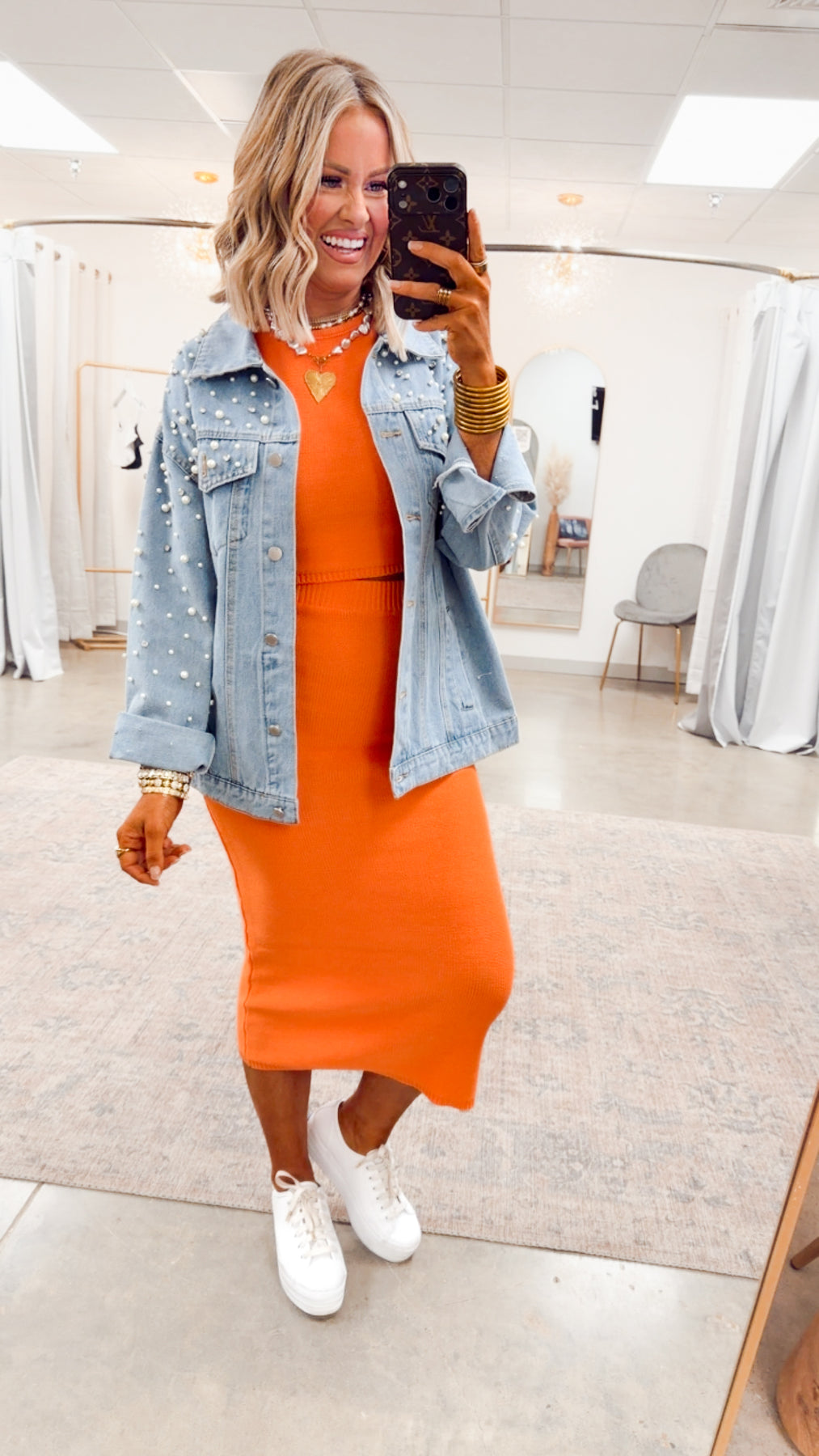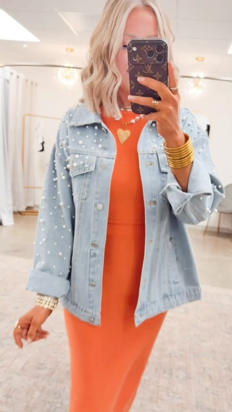 Add a touch of glamour to your wardrobe with our Pearl and Rhinestone Denim Jacket. This classic denim piece is adorned with dazzling pearl and rhinestone embellishments, elevating your everyday look with a chic, sparkling twist. Perfect for layering over dresses or pairing with jeans, this jacket brings effortless sophistication to any outfit.