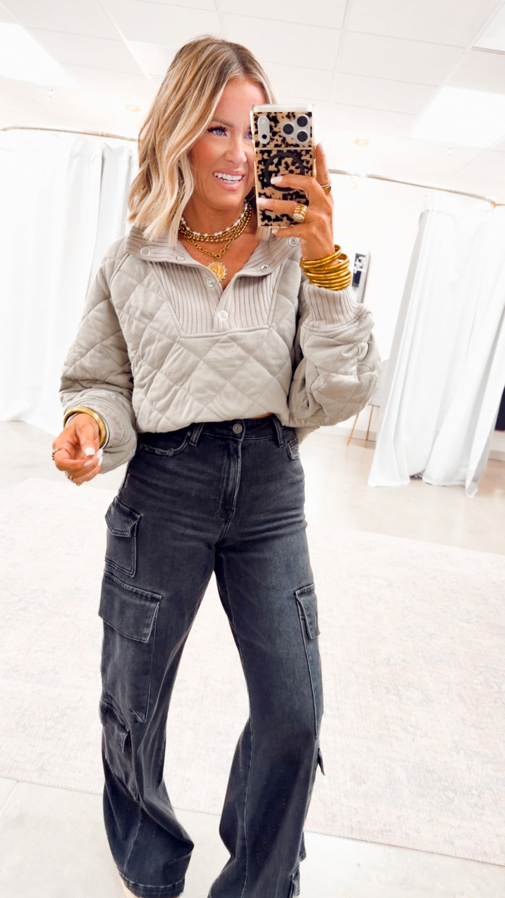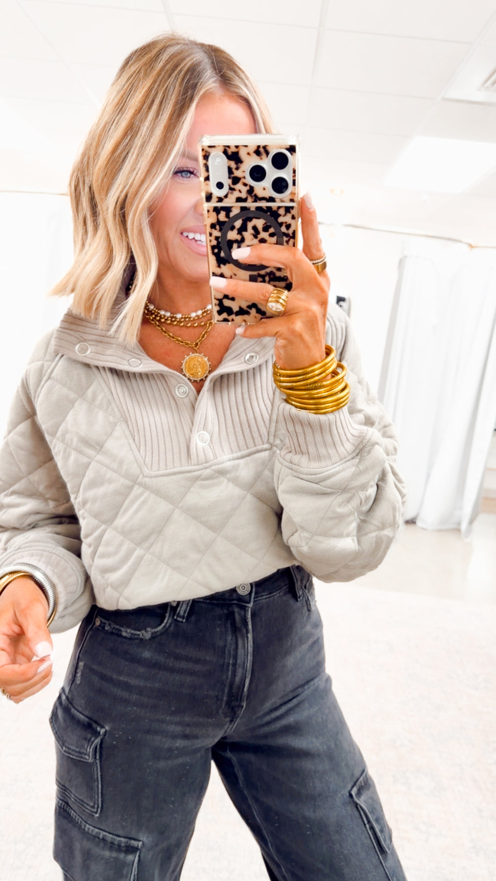 Cozy, pillowy, and perfectly elevated — the Quilted Snap Pullover is the kind of top you’ll slip into once and never want to take off. Crafted from irresistibly soft quilted fabric, this pullover blends warmth with a lightweight, cloud-like feel that keeps you comfortable all day.