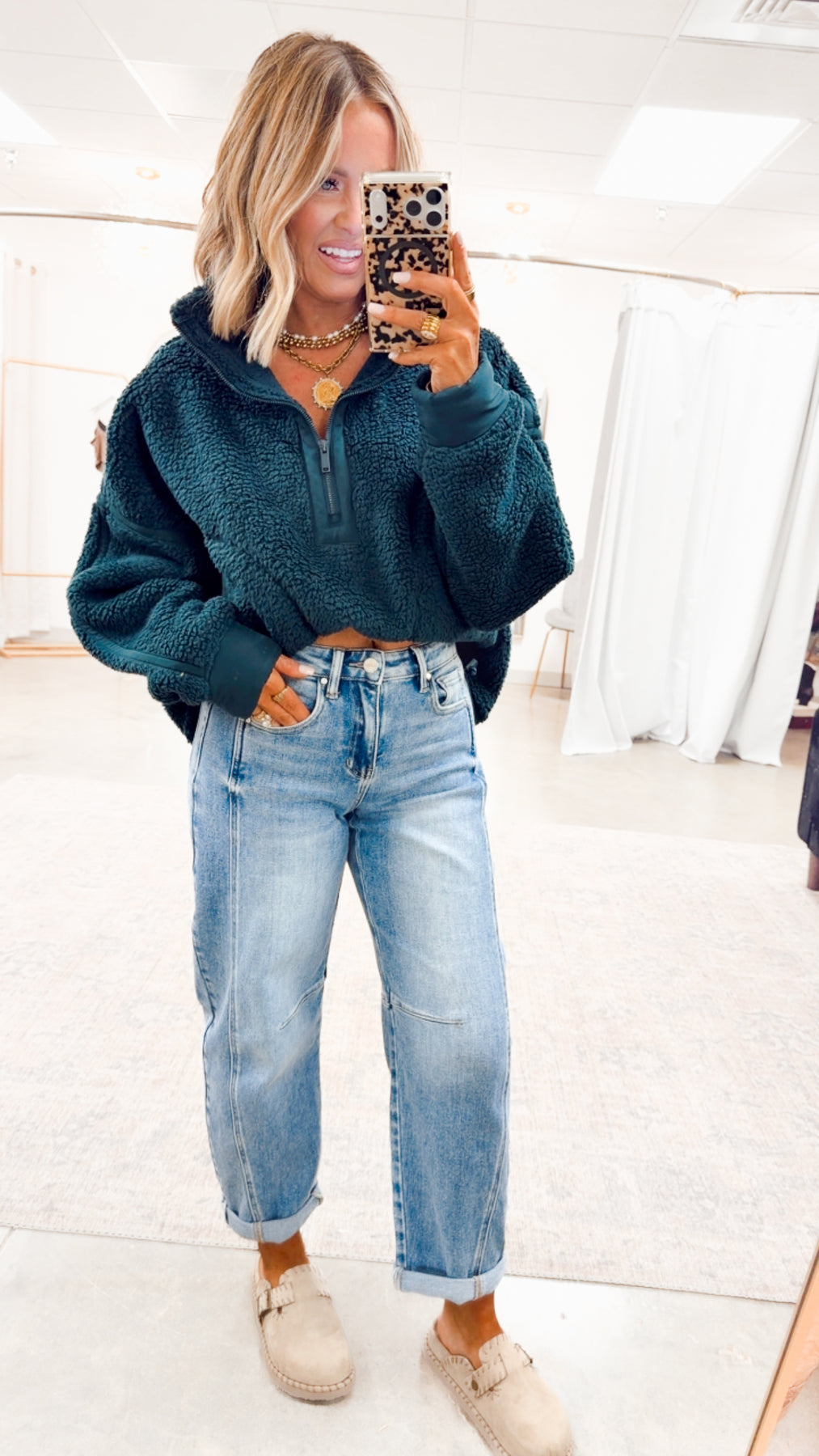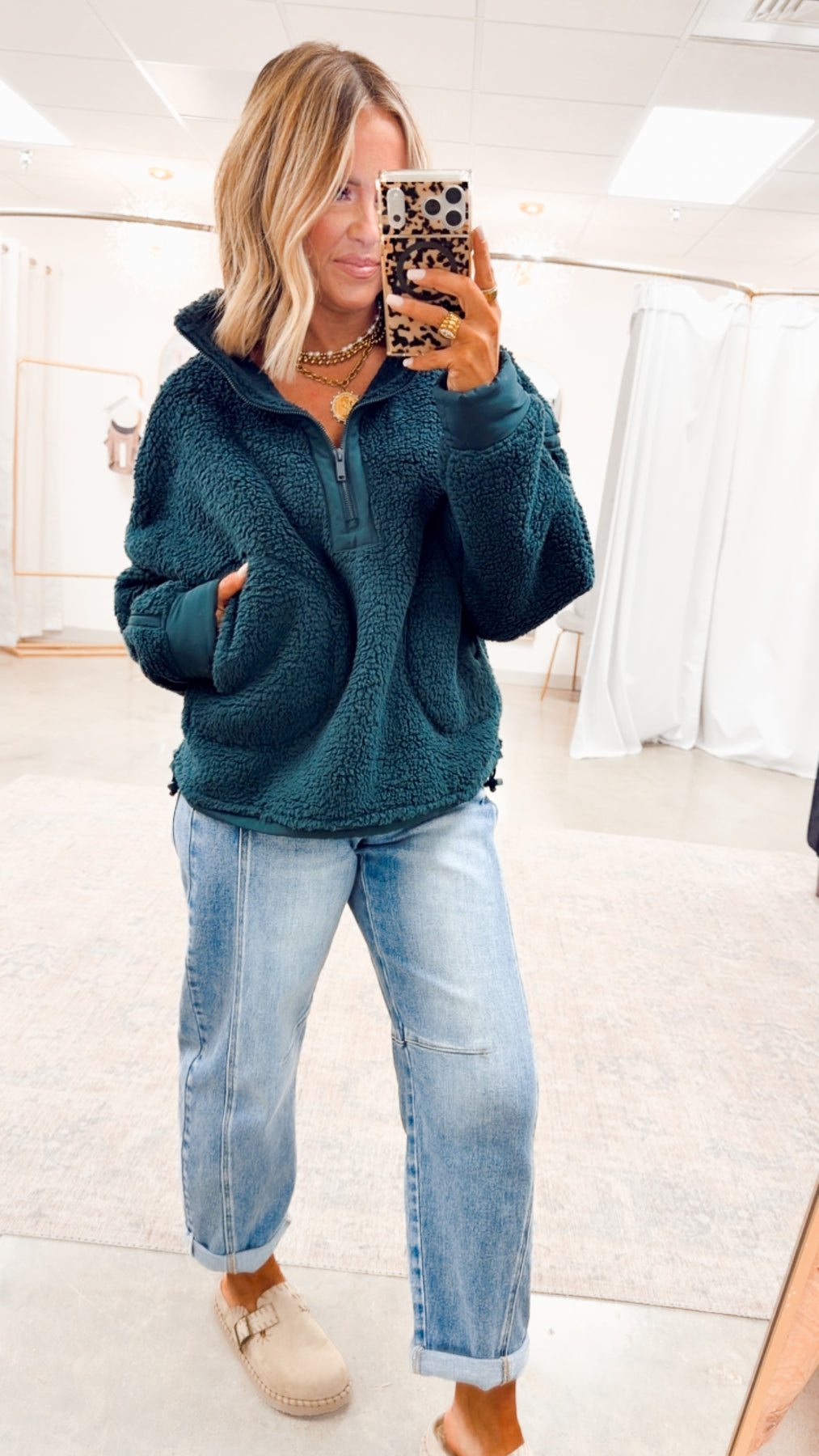 Sherpa Mock Neck Quarter Zip Jacket-Dk Green