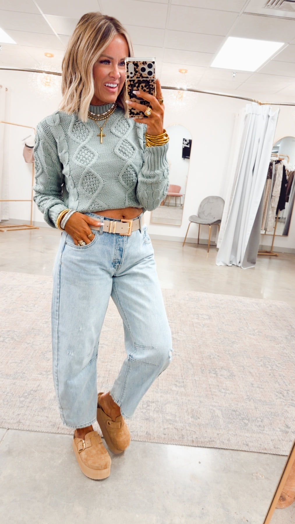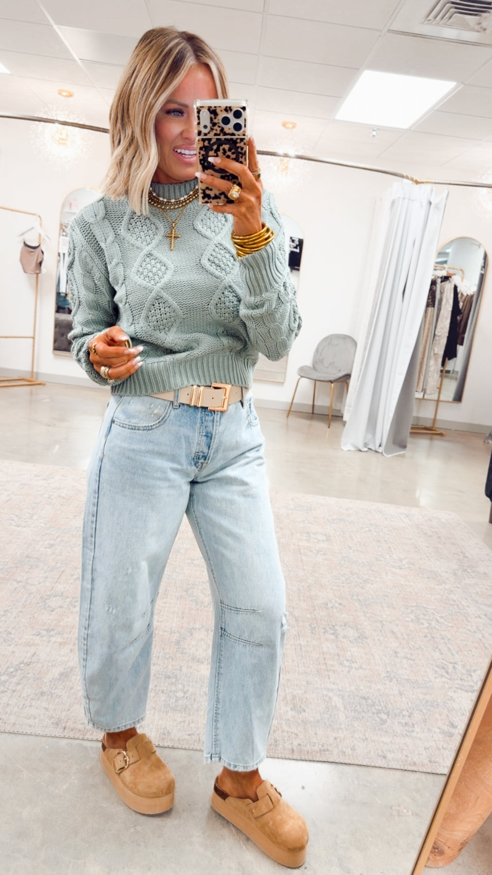 Classic, cozy, and beautifully refined — the Sophie Cable Knit Sweater brings timeless charm to your cool-weather wardrobe. Designed with a textured cable-knit pattern, this sweater delivers both warmth and dimension while maintaining a polished, feminine silhouette.