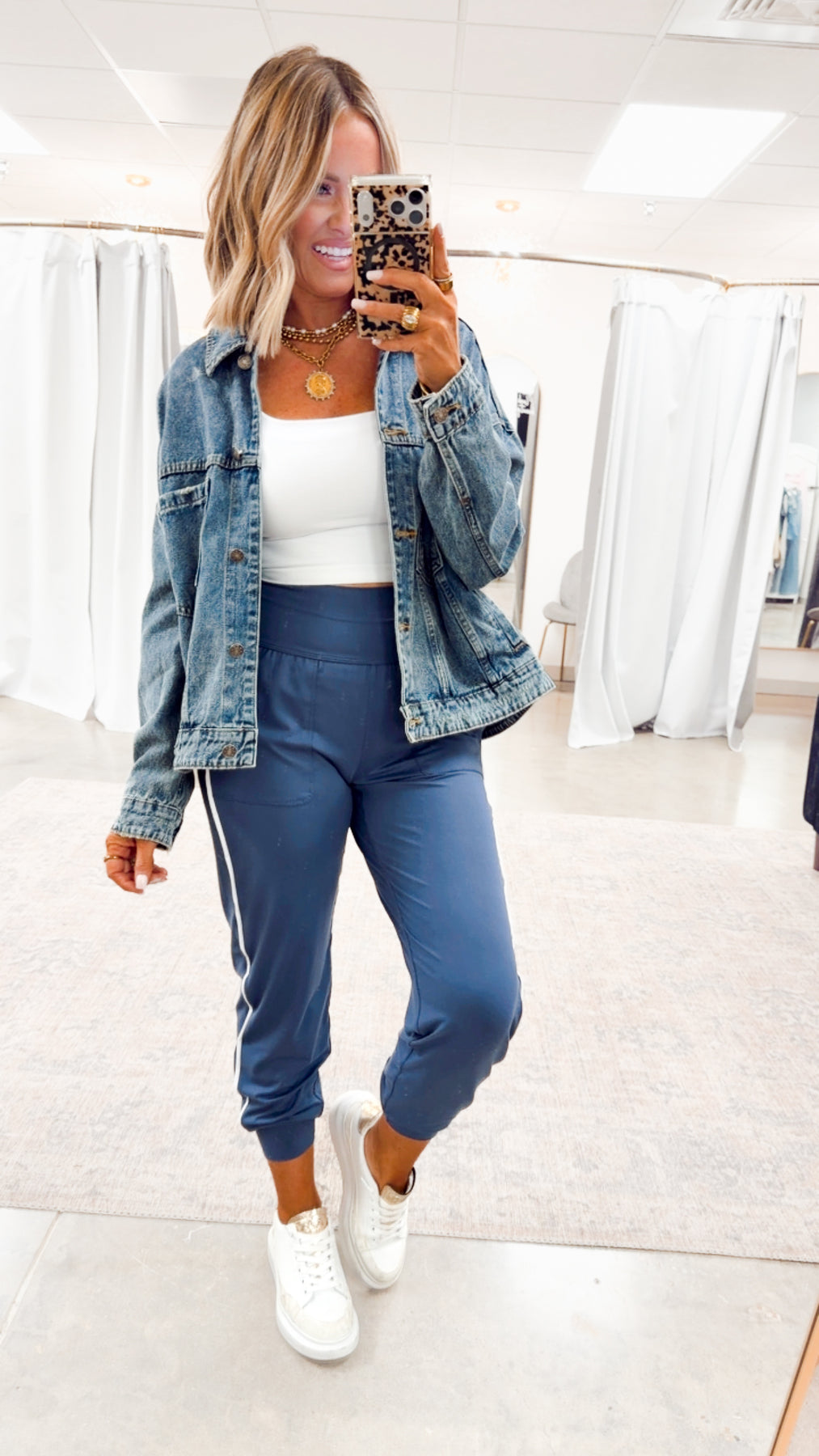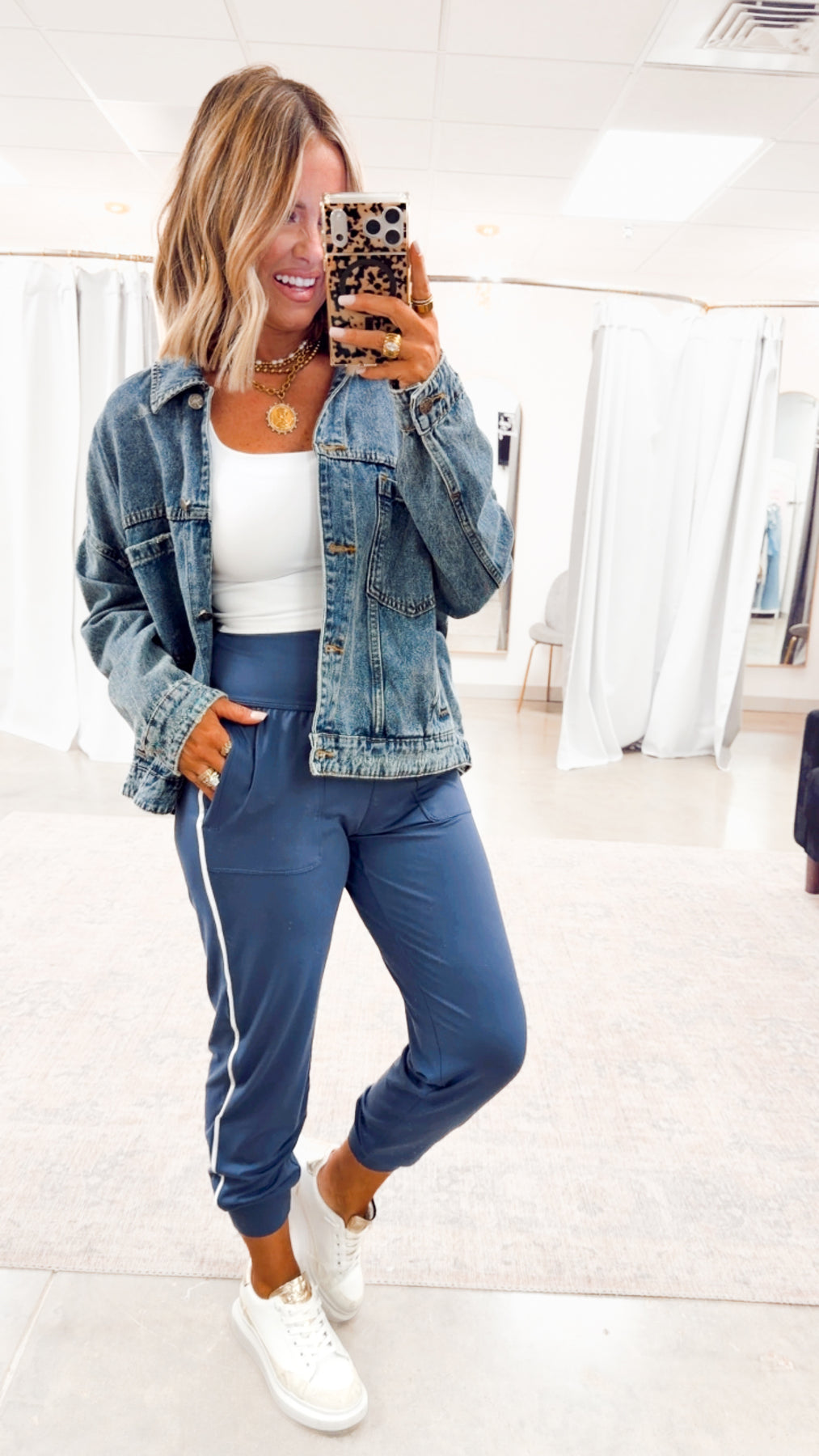 Featuring a relaxed silhouette with a high-rise yoga waistband, they offer the perfect combination of support and ease. The side piping detail adds a sleek, sporty touch, while the side pockets bring practicality without sacrificing style. Whether you're running errands, relaxing at home, or styling an athleisure moment, these joggers move with you effortlessly and feel amazing all day long.